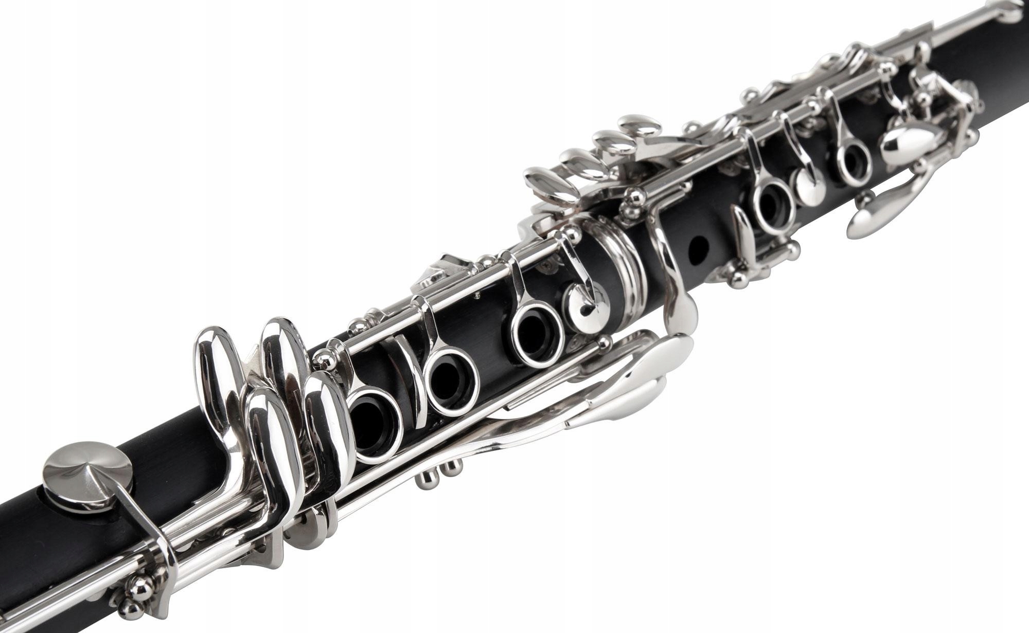 Кларнет Bb, система Бёма, 17 лепестков, посеребренная никелевая механика, корпус из АБС-пластика с имитацией дерева, 2 ствола 1 х 64 мм и 1 х 66 мм, включая мундштук и легкий футляр. Длина кларнета около 68 см, вес кларнета около 735 г, размеры корпуса (Ш х В х В) 35 х 10 х 19 см.