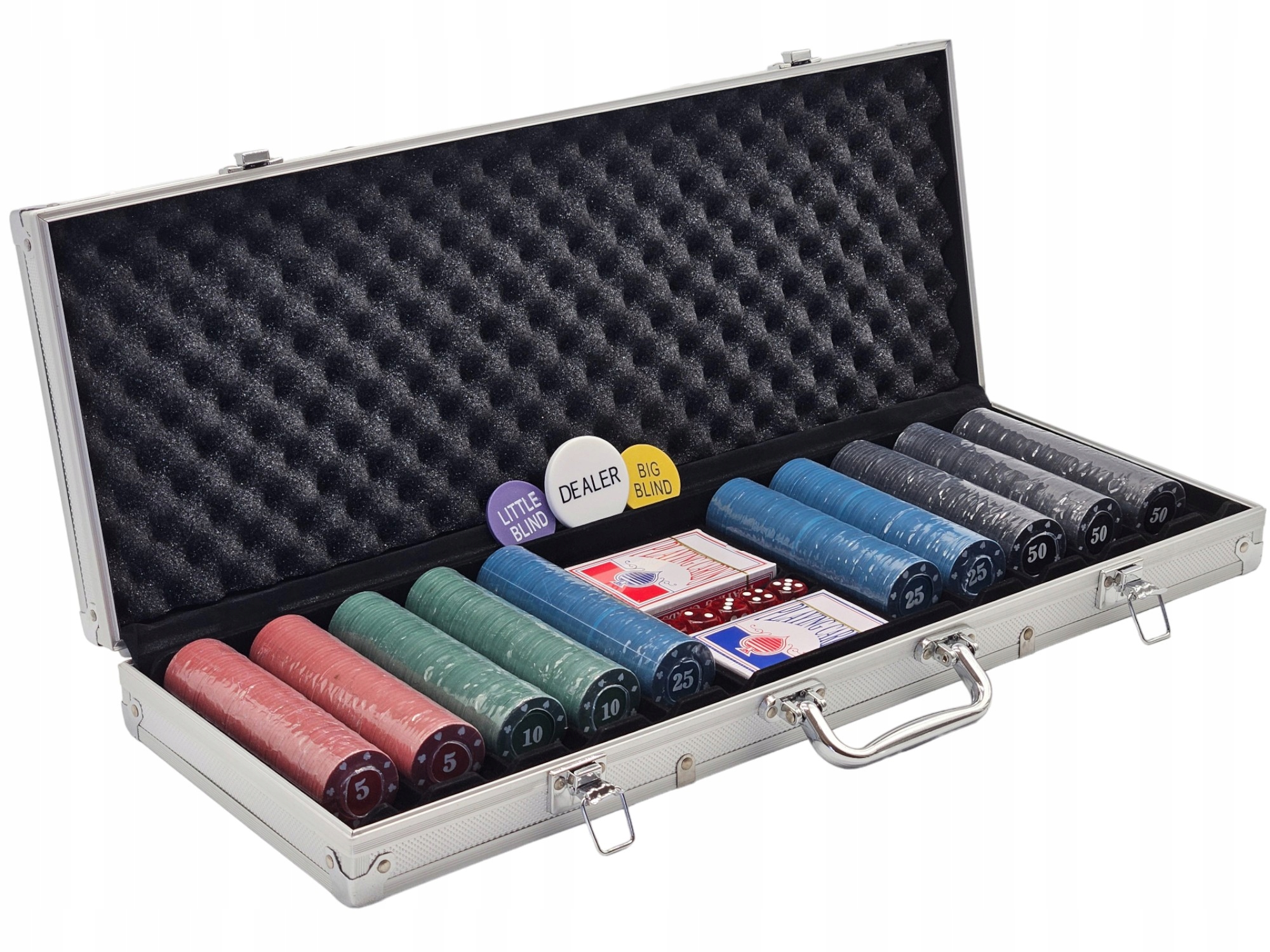 КЛАССИЧЕСКИЙ ПОКЕРНЫЙ НАБОР 500 шт. 2 КОЛОДЫ КАРТ + КОСТИ + ЧЕМОДАН