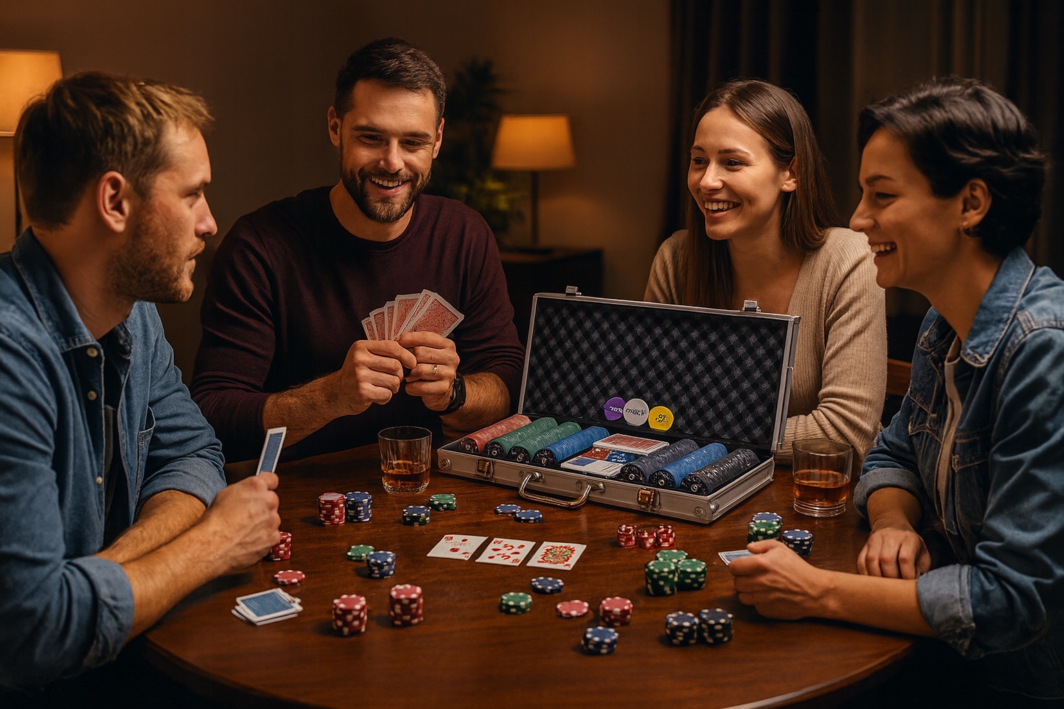 Полный покерный набор: 500 фишек, 2 колоды, игральные кости, функциональные фишки
