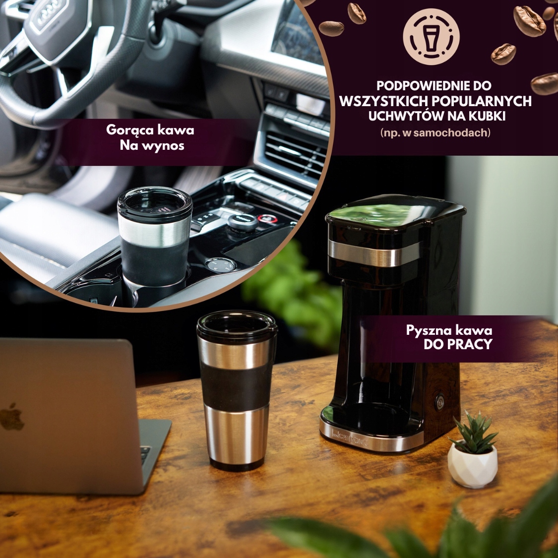 Благодаря тепловой кружке с двойными стенами и закрытой крышкой - вы приведете с собой свой любимый кофе, где бы вы ни захотите . Кружка имеет нельперный ремень для хранения мягкого сенсорного резины и подходит для всех популярных держателей напитков, например, в машине.