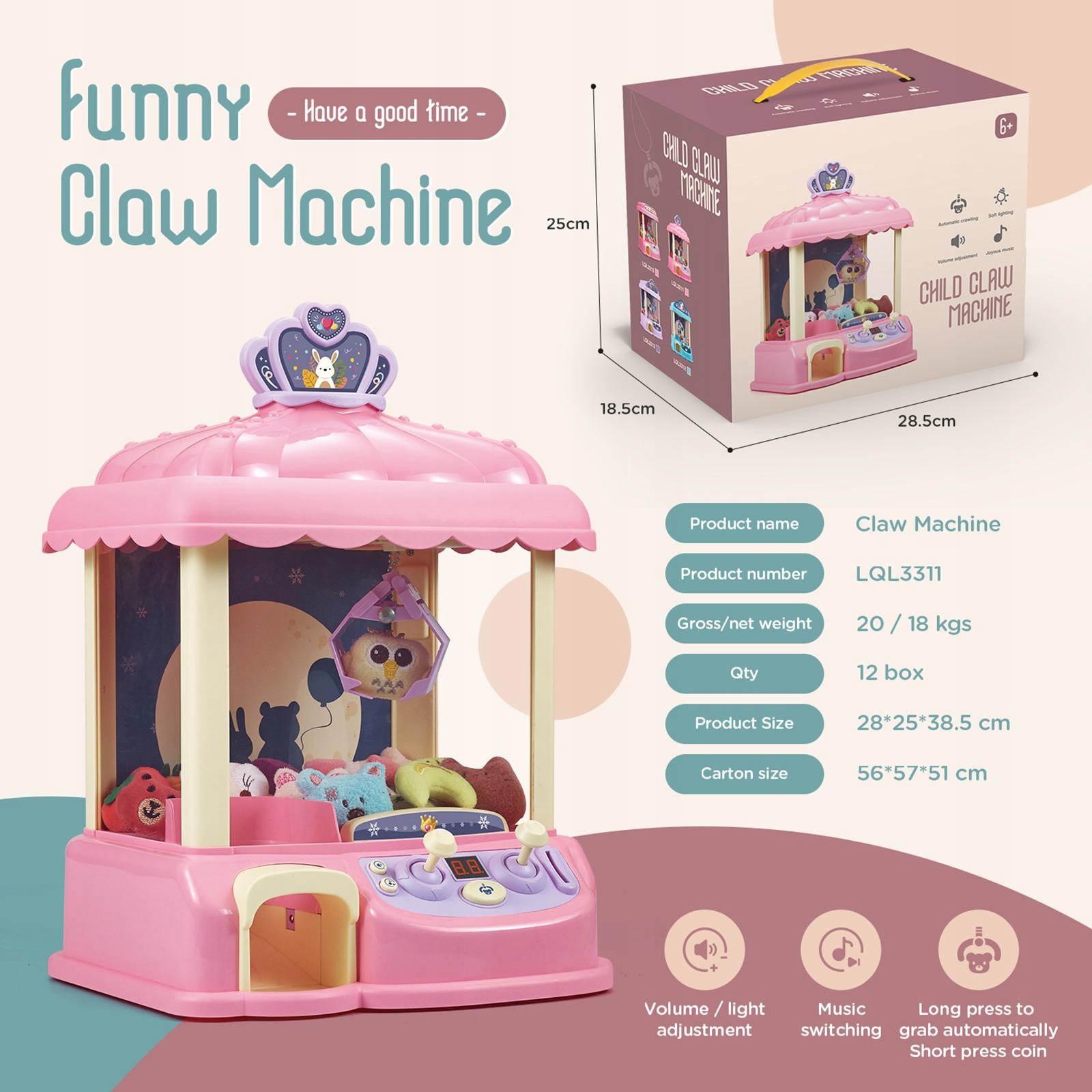 [ГРОМКИХ ЗВУКОВЫХ ЭФФЕКТОВ] Громкие звуковые эффекты игрушечных захватов усиливают волнение и создают реалистичную аркадную игру. Переключение трех песен, регулировка громкости, регулировка трех передач