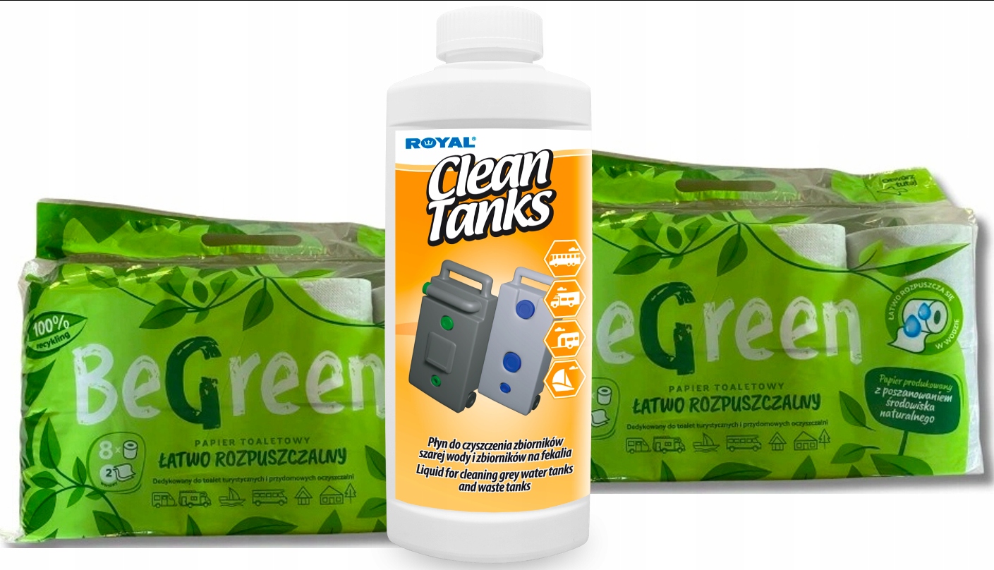 CLEAN TANKS 500 мл + 2 ПАКЕТА ТУАЛЕТНОЙ БУМАГИ BEGREEN