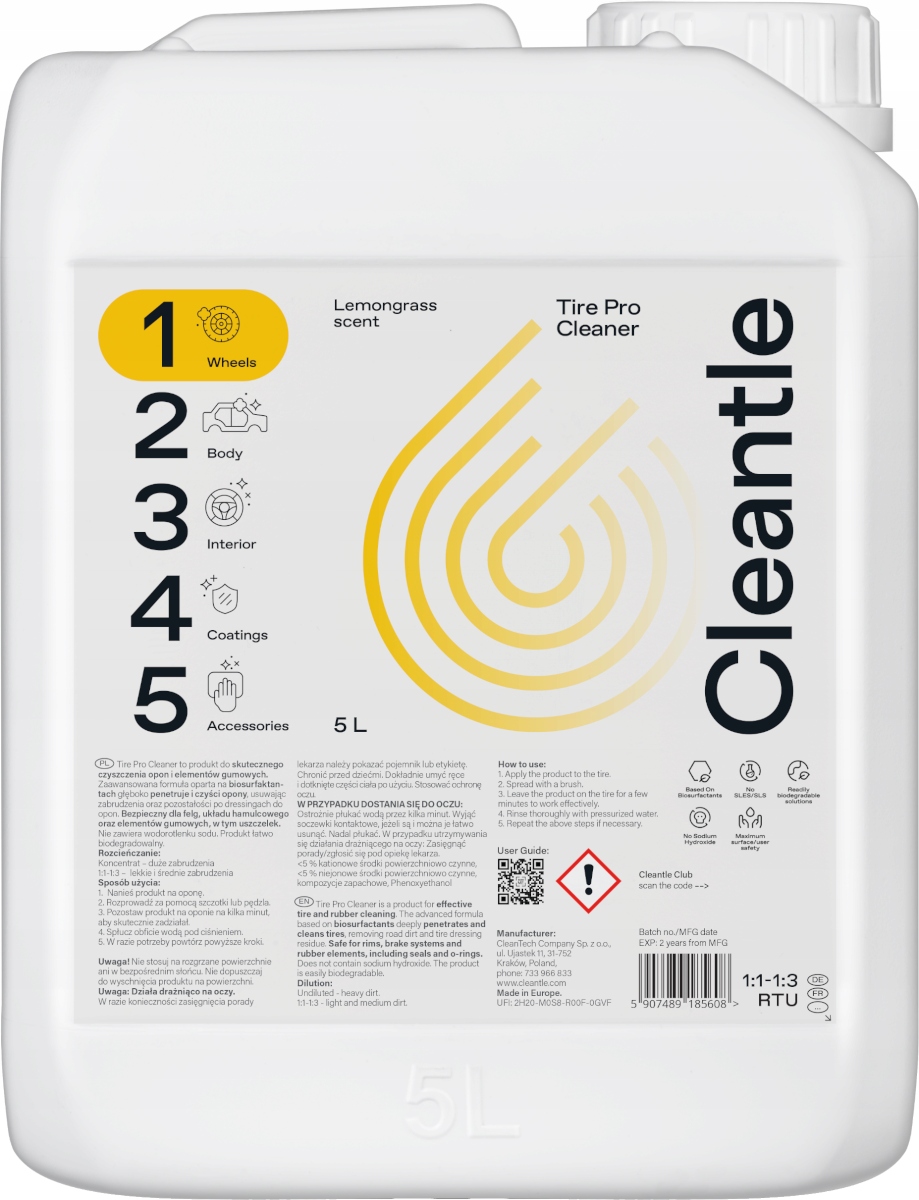 ➡ Вы хотите восстановить шины до их естественного внешнего вида и избавиться от остатков старой одежды b>? Cleantle Tire Pro Cleaner - это профессиональный агент, специально созданный для очистки шин и резиновых элементов. Благодаря биосурфактантам - естественные и эффективные чистящие соединения - подготовка тщательно проникает на поверхность, удаляя грязь и жирные остатки после ранее использованных препаратов.