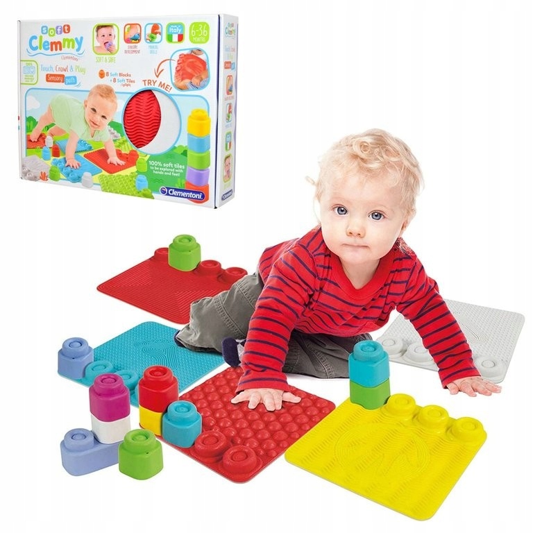 Это набор, который позволит вашему малышу открывать для себя различные формы и текстуры посредством осязания. Сенсорная дорожка Клементони состоит из 8 мягких обучающих мини-матов и 8 мягких блоков – с их помощью можно создавать сенсорные дорожки с различными поверхностями.