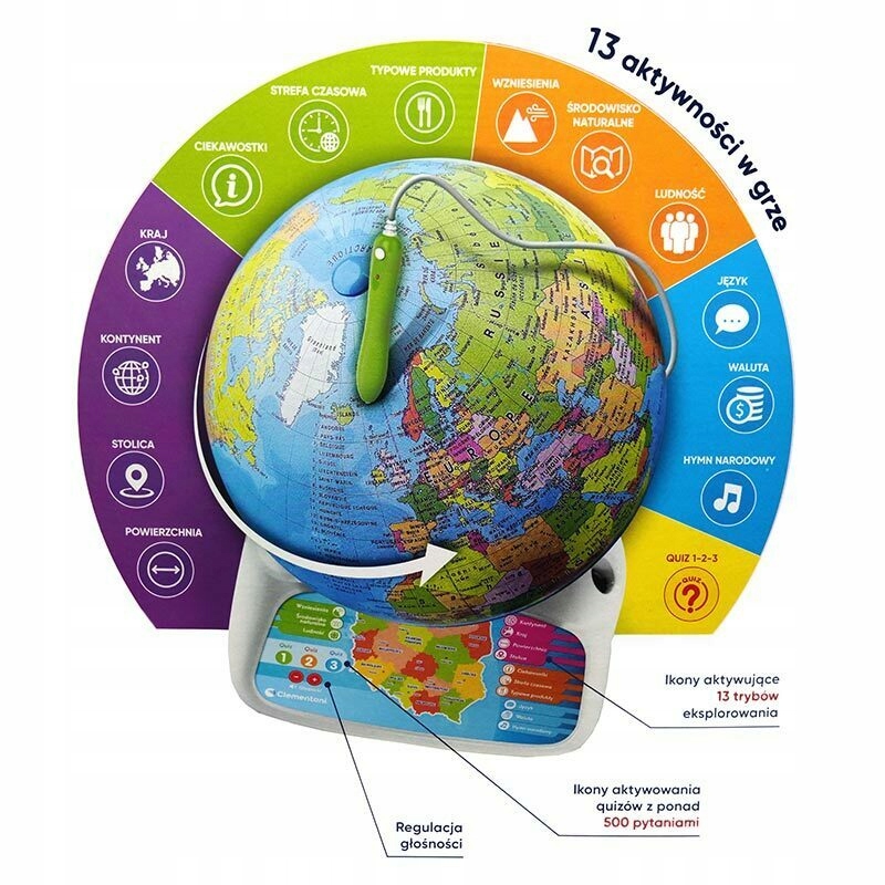 Интерактивный глобус, позволяющий открыть для себя красоту мира. Чтобы начать путешествие, ребенку придется указать ручкой на карту мира, чтобы узнать всю информацию о выбранном месте.