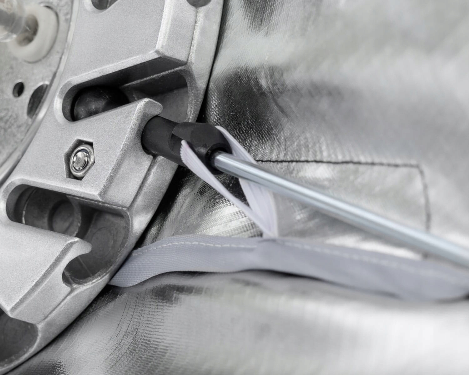 Очень простой механизм разворачивающегося софтбока требует только подъема штока софтбокса изнутри, и палочка почти автоматически скользит в блокирующее отверстие. Это, наверное, самая простая система распространения софтбокса.