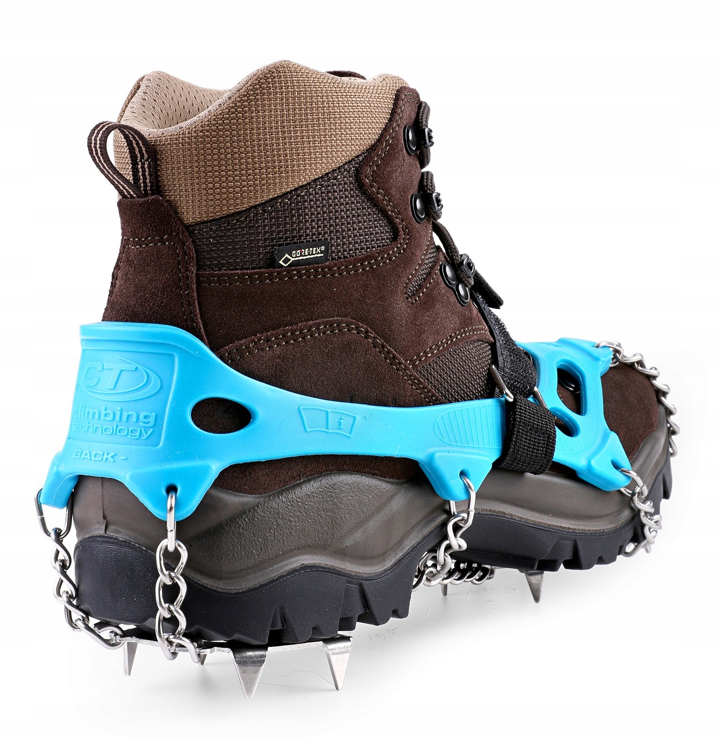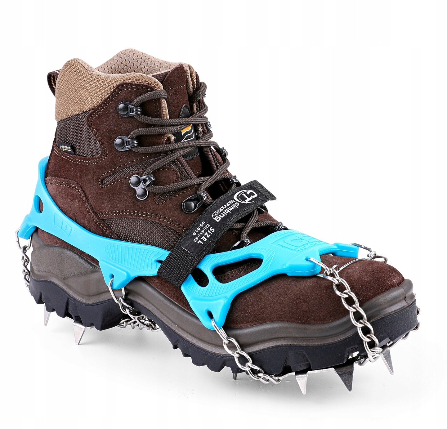 Туристические захваты Ice Traction Plus от бренда Climbing Technology – это легкое и компактное оборудование, обеспечивающее надежное сцепление со льдом и замерзшим снегом. Изготовлены из высококачественной нержавеющей стали, имеют 11 крупных зубьев и два дополнительных поменьше, что повышает устойчивость в сложных условиях. Крепятся на подошве с помощью резинки и липучки, что позволяет быстро надеть и подогнать под большинство типов обуви. Модель посвящена обуви размеров ЕС 44-47.