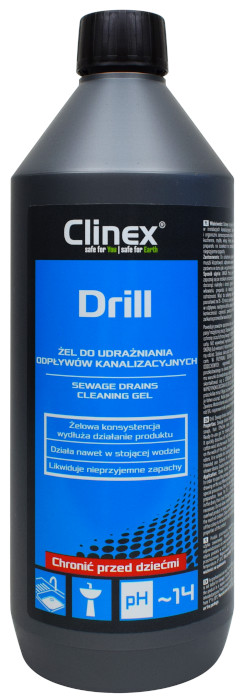 Clinex Drill 1L - гель для очистки труб, сифонов, сточных вод.