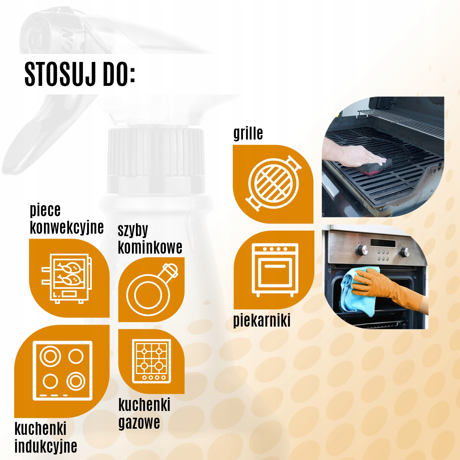 Прекрасно растворяет и удаляет даже самые неприятные загрязнения со всех типов устойчивых к щелочам поверхностей и предметов. Средство особенно рекомендуется для профессиональной чистки грилей, духовок, решеток, плит, нагревательных плит, сковород, коптильных камер и грилей.