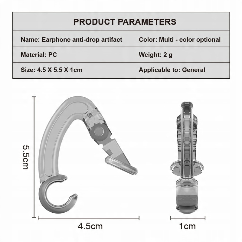 Заушные крючки имеют регулируемую конструкцию, их можно крепить по размеру ушной раковины, независимо от размера уха.