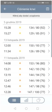 Вы можете подробно описать каждый полученный результат, используя стандартизированные параметры: самочувствие, положение тела во время измерения, руку, на которой проводилось измерение, возникла ли аритмия во время измерения, выбрав соответствующий значок. Вы также можете добавить заметку, например, о лекарствах, которые вы принимаете.