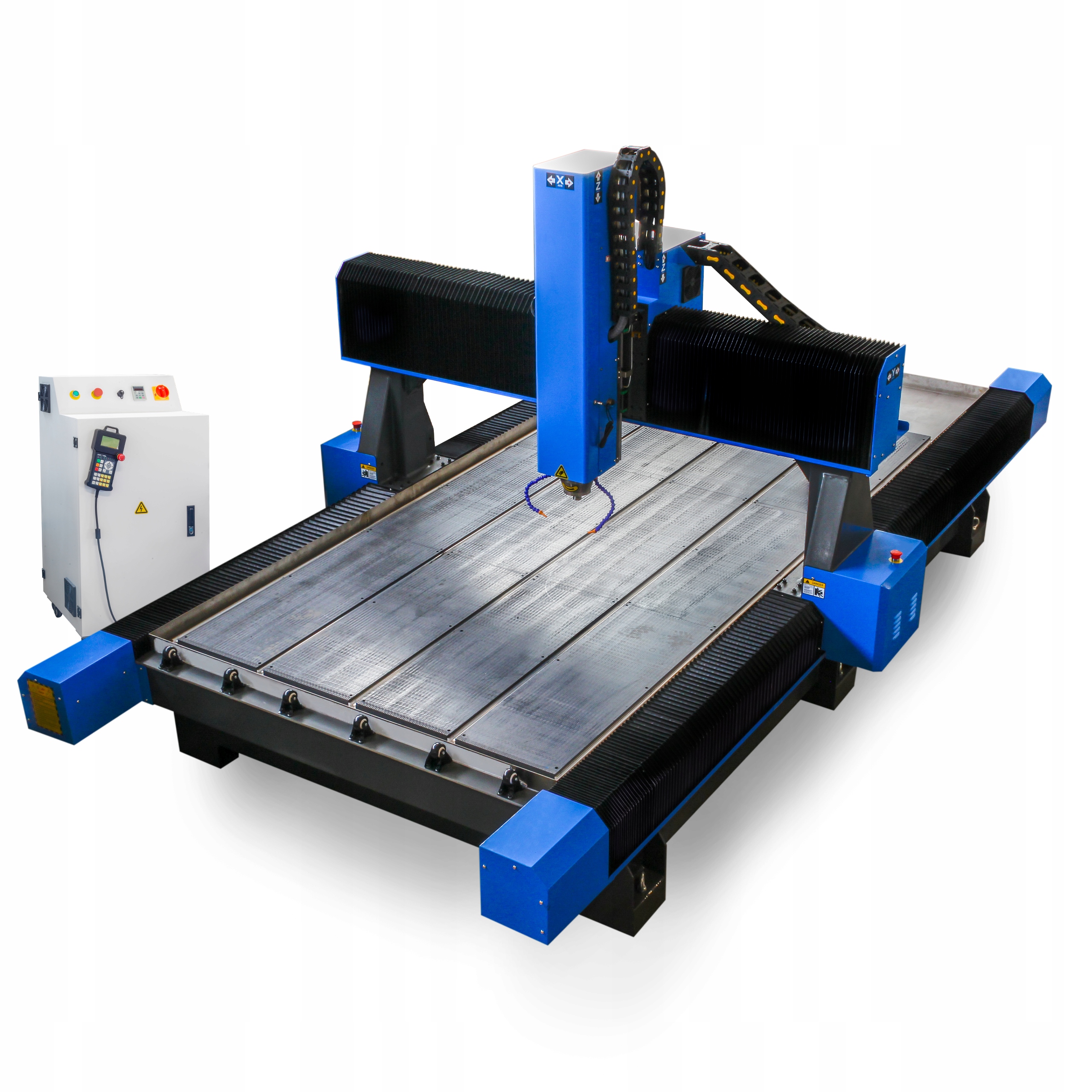 Эффективный фрезерный станок с ЧПУ со шпинделем мощностью 5,5 кВт, специально адаптированный для обработки всех типов камня, позволяющий производить надгробия, резку и гравировку в их. Станок, специально разработанный для больших нагрузок, позволяющий эффективно обрабатывать камень, гранит, кварц и агломерат.