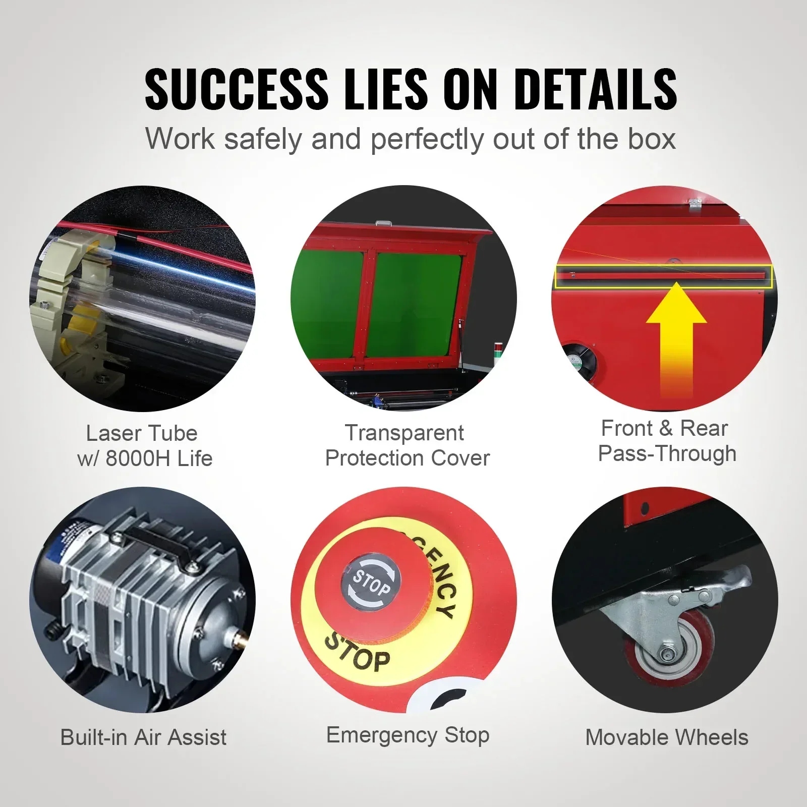 Прозрачное окно просмотра с зеленым фильтром позволяет наблюдать за прогрессом гравировки в любое время, потому что тень блокирует лазерный луч и защищает глаза.