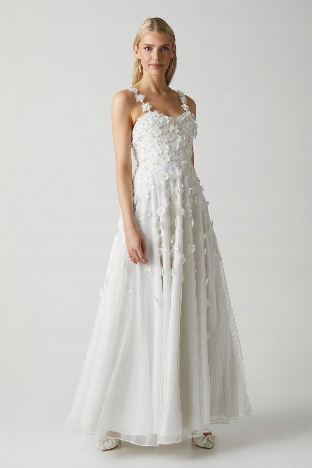 СВАДЕБНОЕ ПЛАТЬЕ МАКСИ С ДЕКОРАТИВНЫМИ ЦВЕТАМИ НА бретелях, ОТТЕНОК БЕРЕГ Слоновой Кости 38