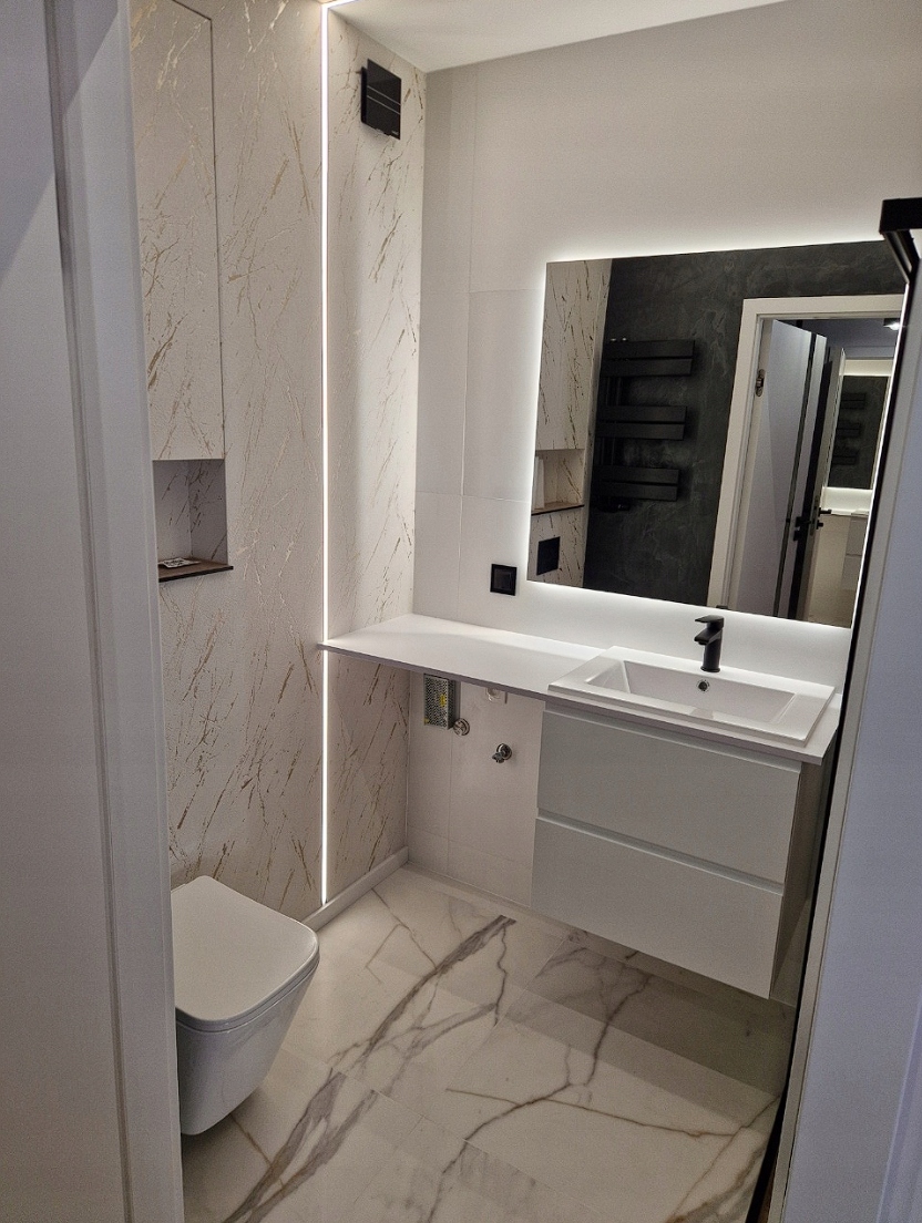 4️⃣ Питание: The Зеркало подготовлено для подключения к электропроводке в стене. Кабели заканчиваются разъемами WAGO, что значительно упрощает установку. Для облегчения подключения можно изменить место установки блока питания. Затем мы запросим эту информацию в «примечаниях к покупке».