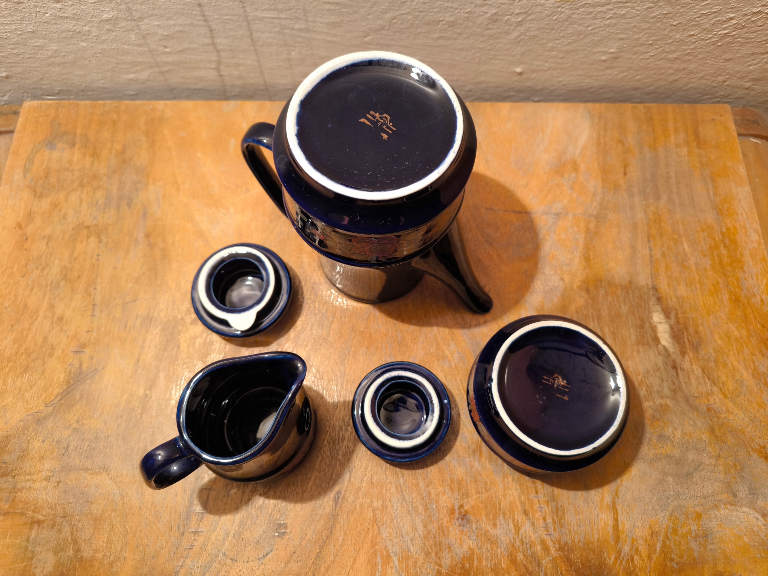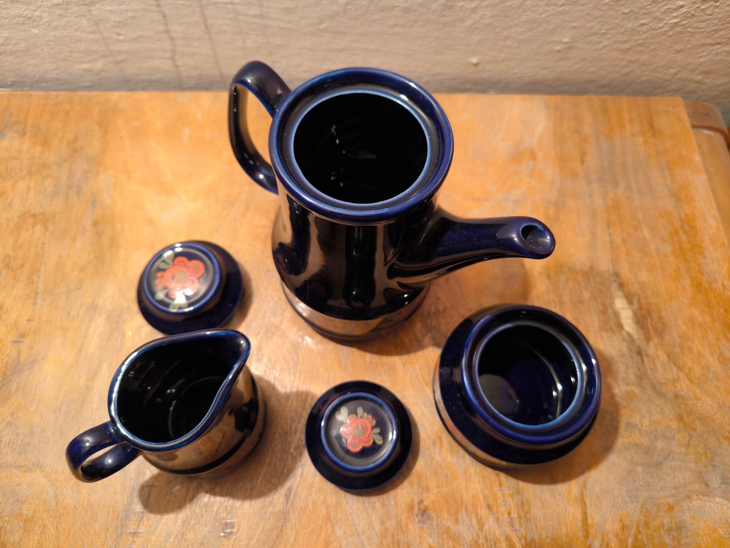 Тема продажи - это кофе -сервис кобальта, производимый ныне несуществующим столовым фикситом «Pruszków».