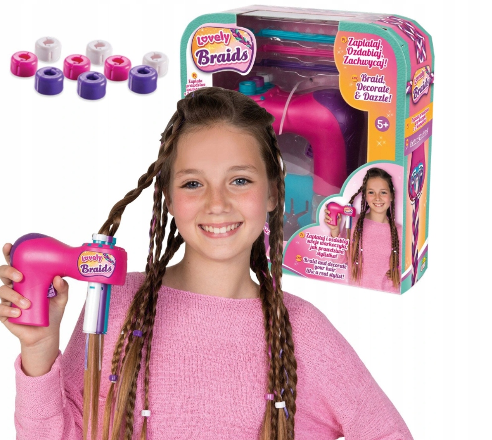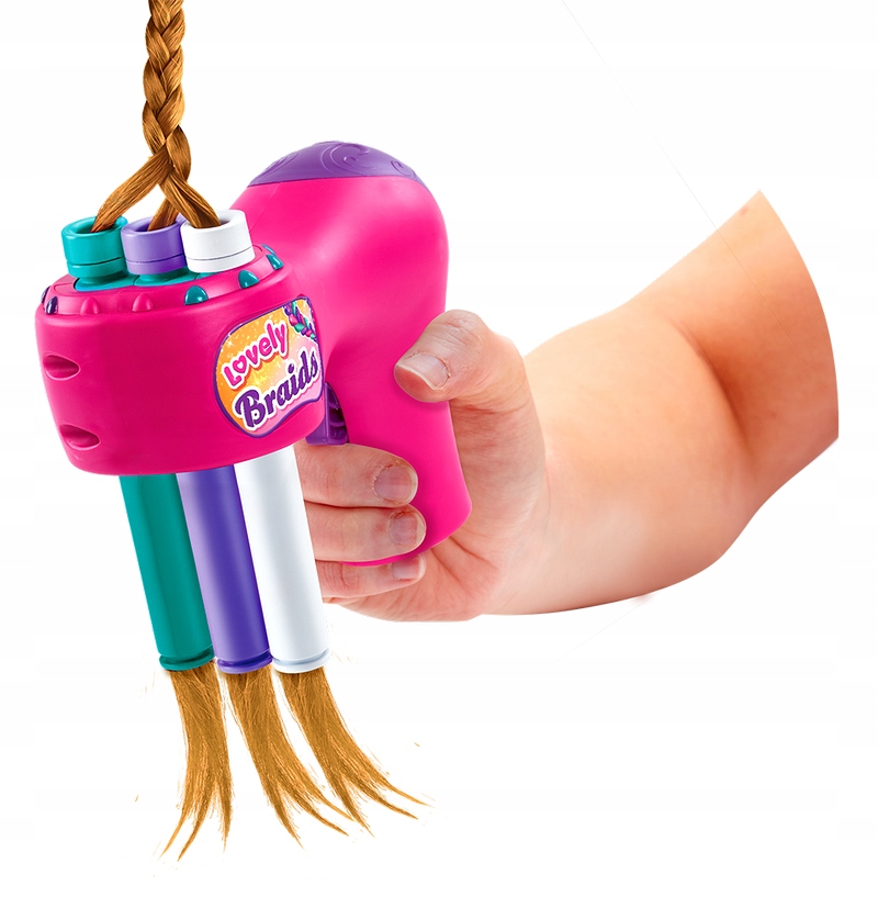 Плетеница делает настоящие косы из трех прядей. Просто поместите пряди волос в три трубочки, используя разделитель и крючки. Затем позвольте плейщику сделать всю работу. Удерживайте кнопку и наблюдайте, как она заплетает ваши волосы. Украсьте прическу яркими резинками и заколками или вплетите в косы разноцветные ленты.