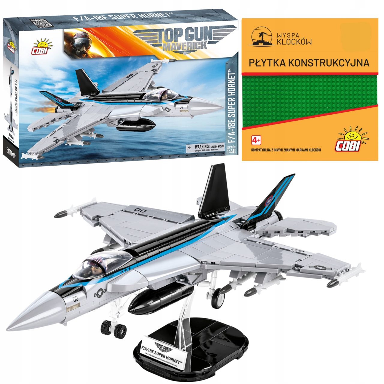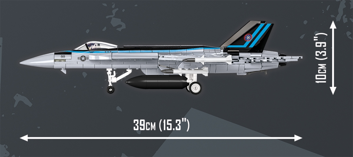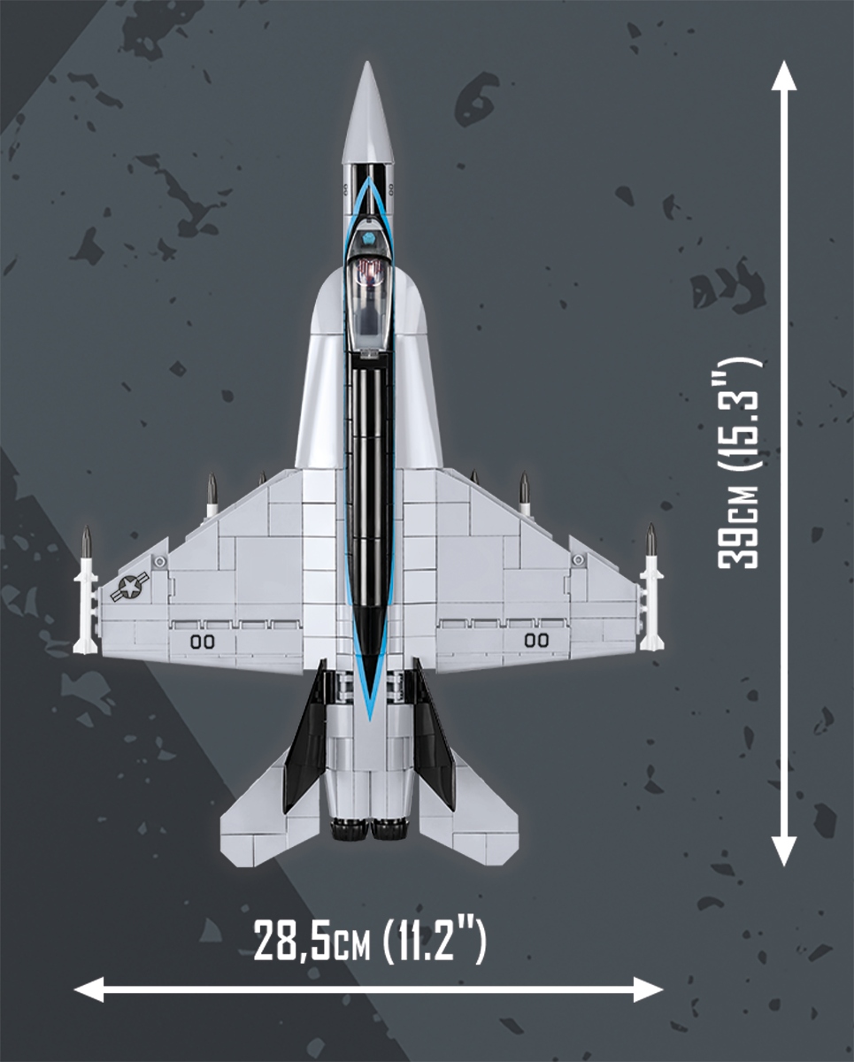 F/A-18E Super Hornet — уникальная модель киносамолета, выпущенная по оригинальной лицензии TOP GUN: Maverick™. Легендарный кинопилот и инструктор ВМС США Пит «Маверик» Митчелл обучает на таких машинах новое поколение пилотов. Создайте свой собственный Супер Хорнет в масштабе 1:48. Модель была точно воспроизведена из 560 строительных блоков COBI. Последняя обновленная версия включает специально разработанные тонкие вертикальные стабилизаторы и структурные улучшения. Теперь модель выглядит еще лучше, и устоять перед ней еще сложнее! В набор F/A-18E Super Hornet входят высококачественные отпечатки, точно воспроизводящие оригинальную окраску киноаппарата. Здесь нет наклеек! Под крыльями самолета находится большой арсенал вооружения. Мы можем разместить в кабине специальный пилотный кирпич. В комплект также входит кирпичная подставка для дисплея и табличка с названием самолета и логотипом фильма. Этот эксклюзивный лицензионный набор идеально подойдет любителям боевиков, авиации и блочного моделирования! Почувствуйте приключение и создайте его!