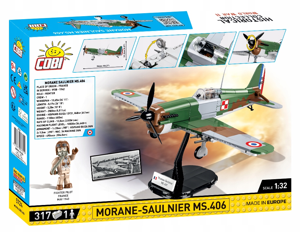 Используя 317 строительных блоков COBI, вы построите идеально воспроизведенный французский истребитель времен Второй мировой войны в масштабе 1:32! Эта красивая историческая модель была разработана с вниманием к деталям. Блоки покрыты высококачественными принтами, которые не стираются даже при интенсивной эксплуатации.