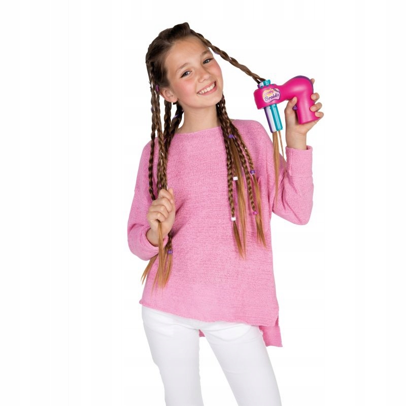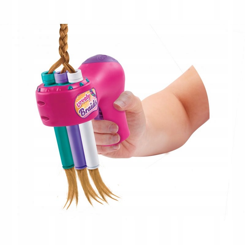 Просто уложите пряди волос заплетите косички в три трубочки, нажмите кнопку и наблюдайте, как плетейщица делает настоящую косу из трех прядей.