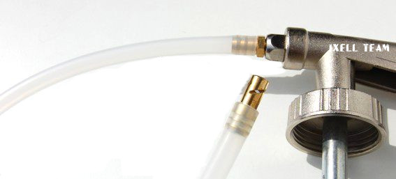 Корпус пистолета изготовлен из алюминия, пистолет подходит для типичных канистр объемом 1 - 2 литра.с резьбой, для т.н. "барашек".