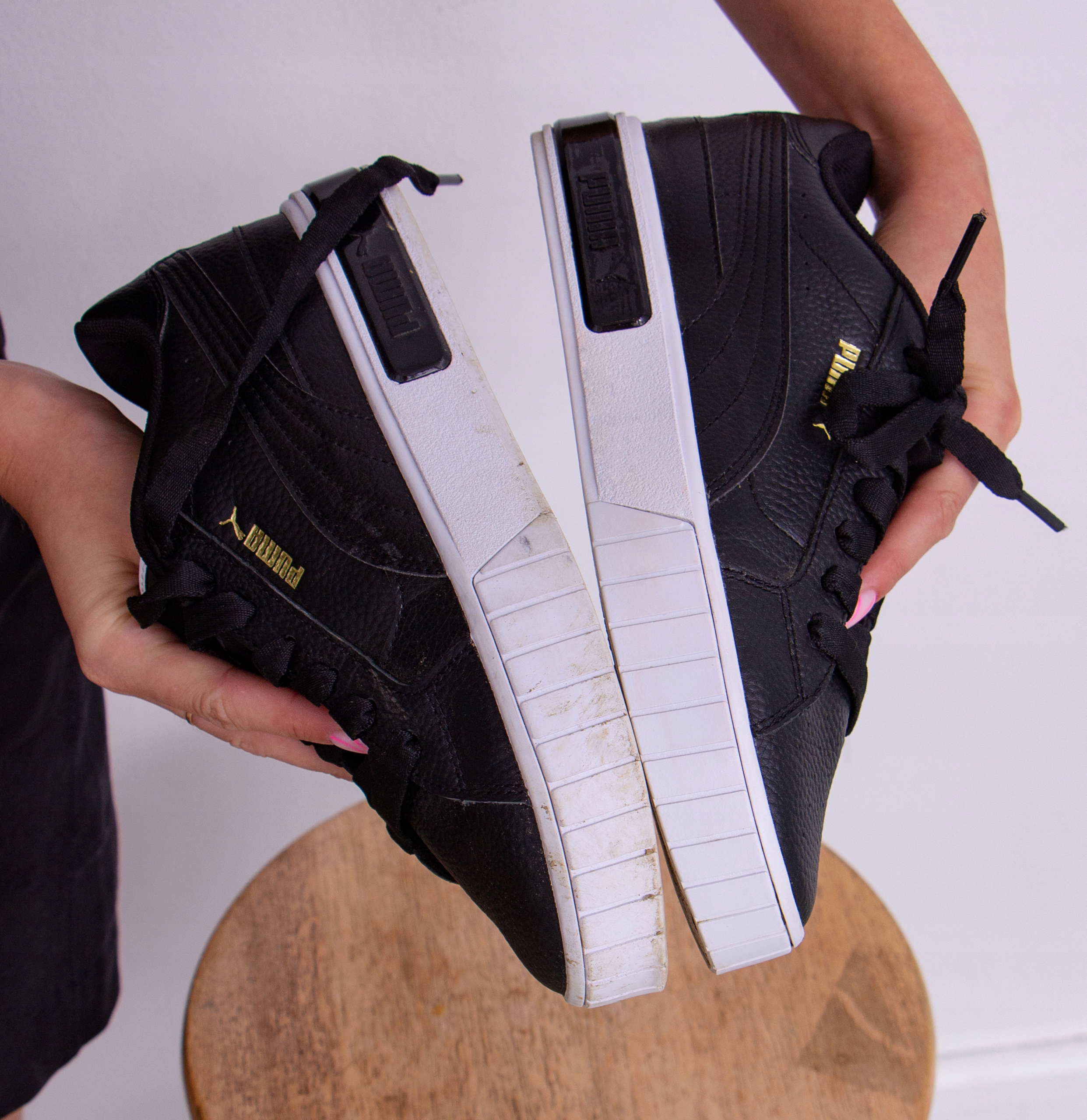 Белые подошвы спортивной обуви имеют свойство пачкаться. Выглядит не очень, ведь белый показывает практически все, даже самые мелкие загрязнения.
