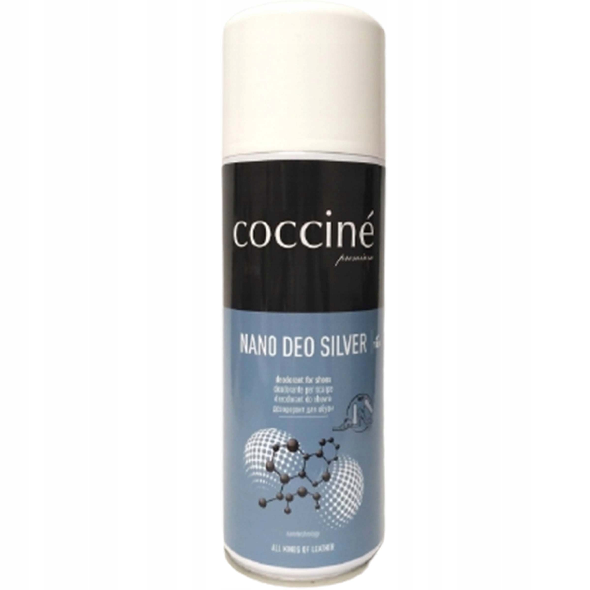 Дезодорант для обуви, COCCINE PREMIUM NANO DEO SILVER — сильный и эффективный дезодорант для защиты спортивной обуви. против неприятных запахов. Создан для активных людей. Просто распылите средство на внутреннюю часть обуви, чтобы долгое время наслаждаться свежим ароматом. Благодаря особой конструкции колпачка препарат можно наносить традиционно или с флаконом, повернутым на 180 градусов, благодаря чему он достигает всех укромных уголков внутренней части обуви.