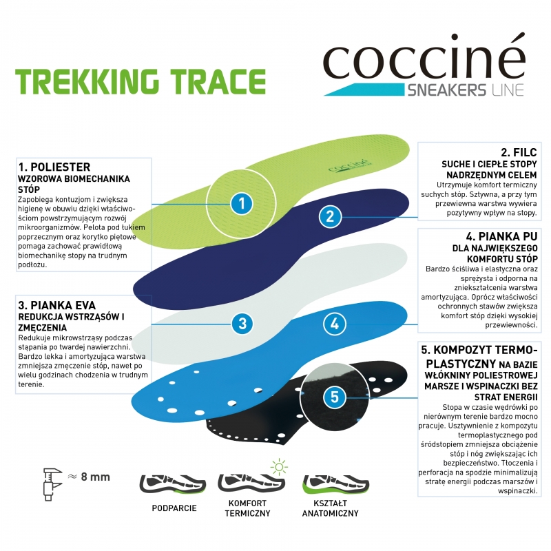 - Cocciné Trekking Trace — пятислойная стелька для треккинговой обуви.