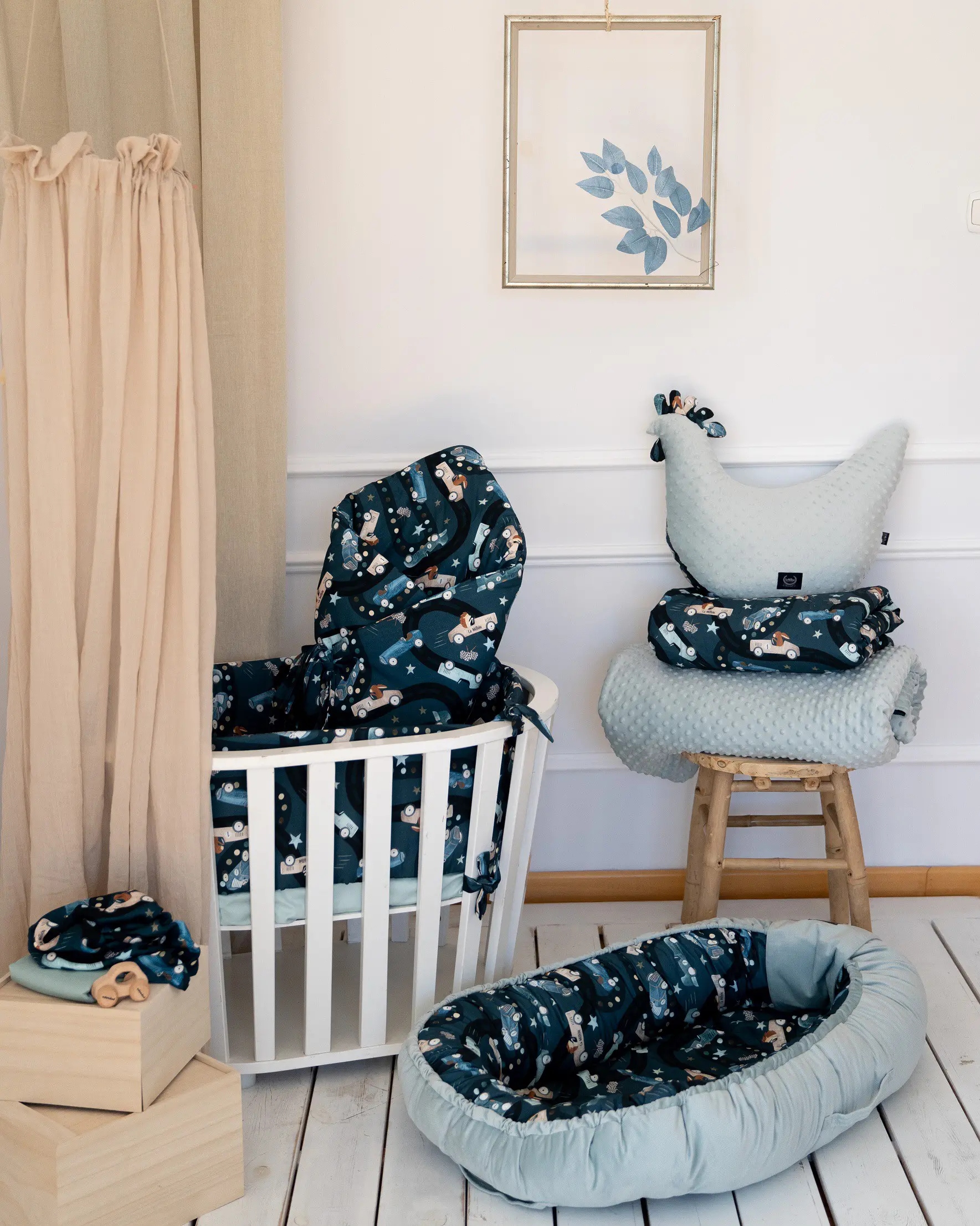 Лучший бархатный Nest на дороге La Millou. Многофункциональный детский кокон создан из любви к детям: чтобы у малыша всегда было свое отдельное, уютное место для игр, сна и отдыха под присмотром родителя. Лежа в коконе, малыш может проводить время со своим родителем, сопровождая его во время различных занятий, таких как работа, отдых на диване, купание и даже во время активного отдыха. Он идеально подходит для путешествий, малышам иногда трудно справиться с незнакомыми местами и новой обстановкой, благодаря нашему кокону у ребенка всегда будет свое место для отдыха. Внутренняя часть боковин и низ выполнены из воздушного хлопка, а внешняя часть – из мягкого и воздухопроницаемого элегантного бархата. Боковые стороны заполнены мягким антиаллергенным силиконовым шариком. В дно кокона мы вшили гибкий нетканый материал, поэтому кокон можно смело стирать в стиральной машине без риска сдвинуть. Кокон можно затянуть шнурком внизу, что позволяет легко регулировать размер. Детям постарше изделие можно развязать, создав дружелюбную игровую зону, не ограничивающую движения ног. Шнурок дополнительно закреплен язычком, что делает его полностью безопасным для ребенка. Наши коконы бывают двух размеров: Normal и Grande. Версия Normal более удобна и идеально подходит даже для небольших кроватей или для родительских кроватей. Версия Grande (после снятия ее внизу) подходит для кроватей размером от 60 см х 120 см, а после расстегивания застежки внизу кокон станет уютным местом для игр и отдыха даже для детей, которым всего несколько лет. лет. ПРИМЕЧАНИЕ. Детский кокон нельзя использовать в качестве переноски и в нем нельзя носить ребенка. Продукт следует использовать под присмотром взрослых.
