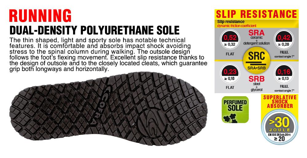 ВСТАВКА: ЭВАНИТ, изготовленная из ЭВА и специального нитрильного компаунда, с высокой несущей способностью и переменной толщиной (12 мм - 8 мм - 3,8 мм). Термоформованный, анатомический, перфорированный и покрытый воздухопроницаемым материалом. Антистатический благодаря специальной обработке поверхности и швам из токопроводящих нитей.