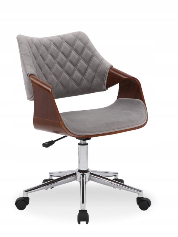 Кресло COLT из коллекции кресел HALMAR – вращающееся кресло в современном стиле. Сиденье и спинка выполнены из серого бархата. Подлокотники и основание сиденья изготовлены из гнутой фанеры цвета орех. Сиденье оснащено базовым механизмом регулировки, позволяющим поднимать и опускать сиденье.