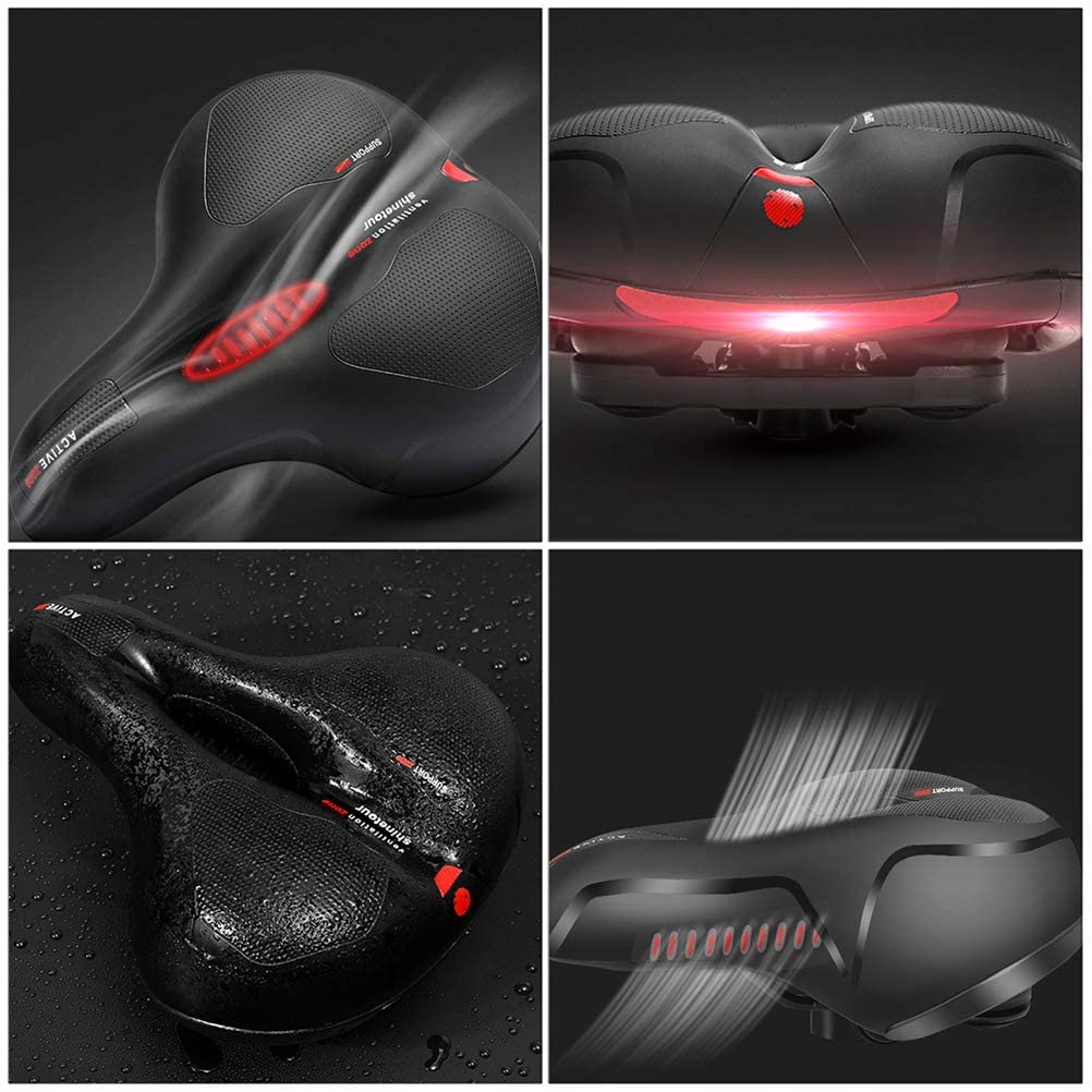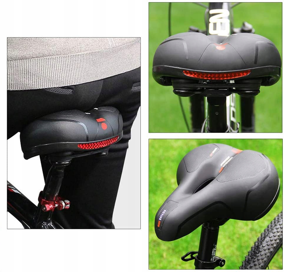Чрезвычайно удобное и комфортное гелевое велосипедное седло с зоной восстановления. Идеально подходит для людей, испытывающих дискомфорт на стандартных седлах во время длительных велопоездок. Оснащен специальным анатомическим отверстием, которое улучшает вентиляцию и двойную амортизацию, повышая комфорт вождения. Подвешивается на 2-х стержнях, что значительно повышает его устойчивость. В задней части седла имеется отражатель и дополнительный красный светодиодный фонарь, благодаря которому можно обойтись без классического заднего велосипедного фонаря. Лампа съемная и питается от встроенного аккумулятора. В комплект также входит USB-кабель для зарядки.