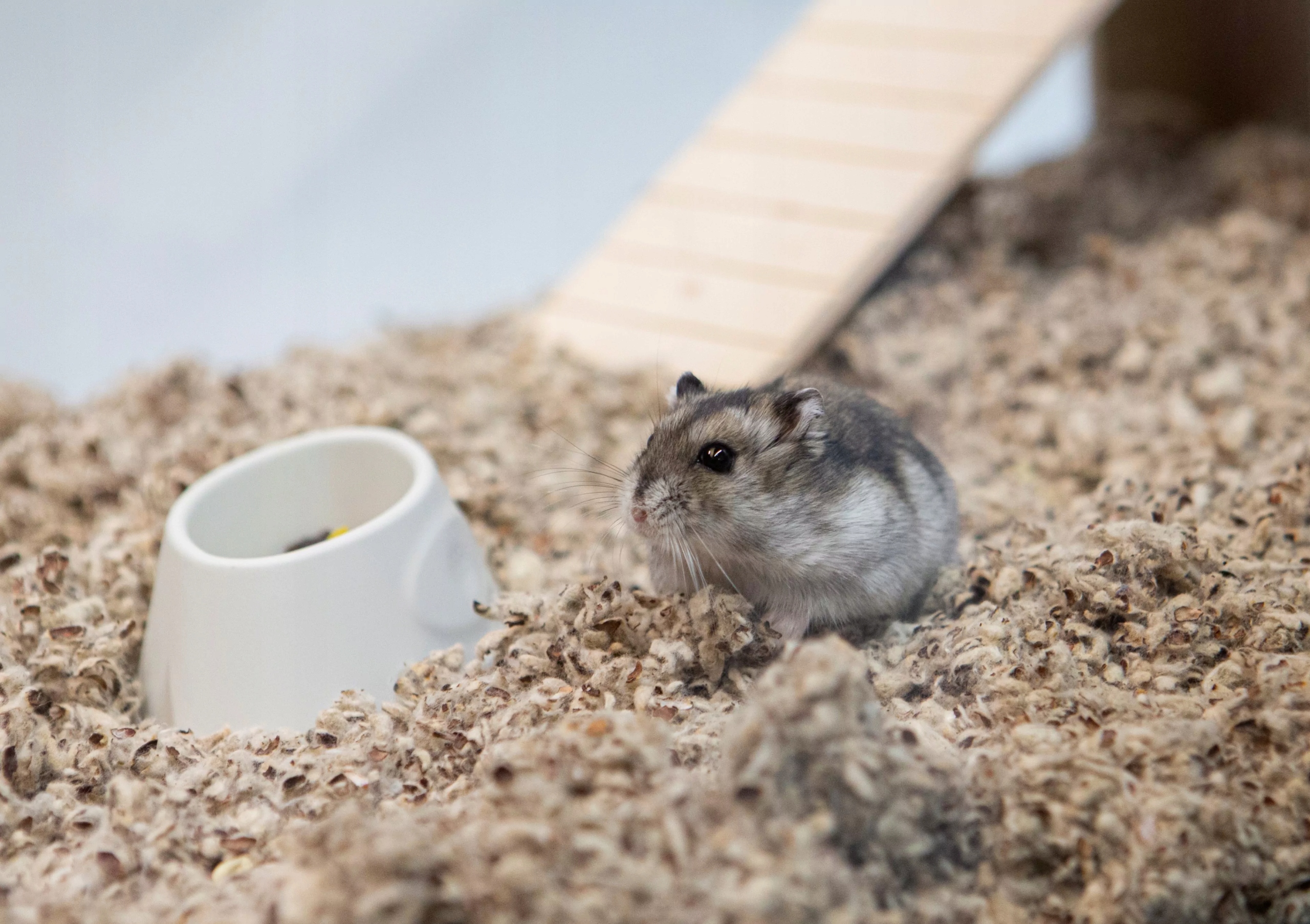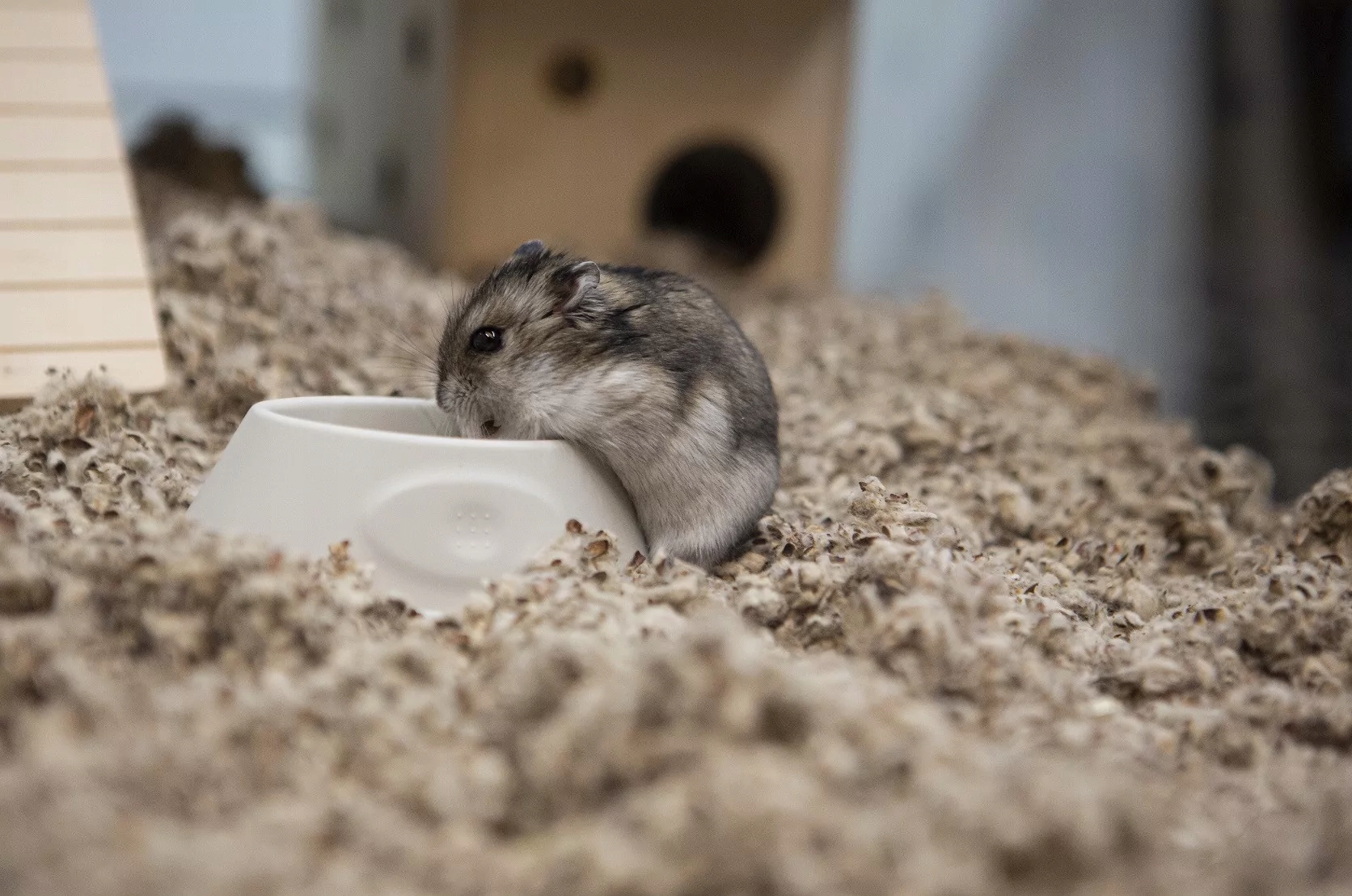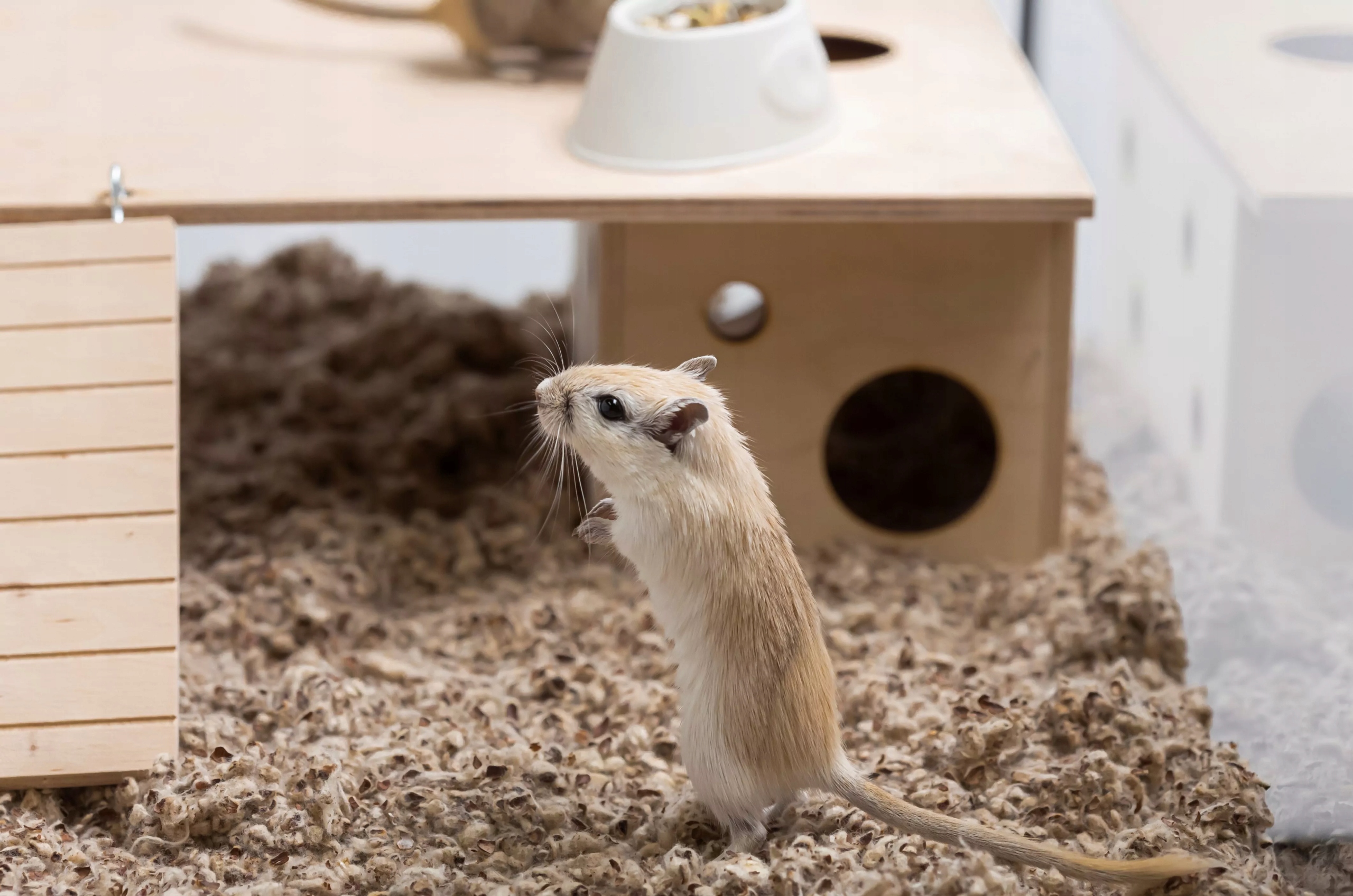 Положите в клетку соответствующий слой подстилки - для мышей, крыс и кроликов около 5-7 см, для песчанок около 12-15 см и для хомяков не менее 20 см. У кроликов удаляйте засохшие фекалии каждые 2 дня, чтобы продукт можно было использовать до 3-4 недель.