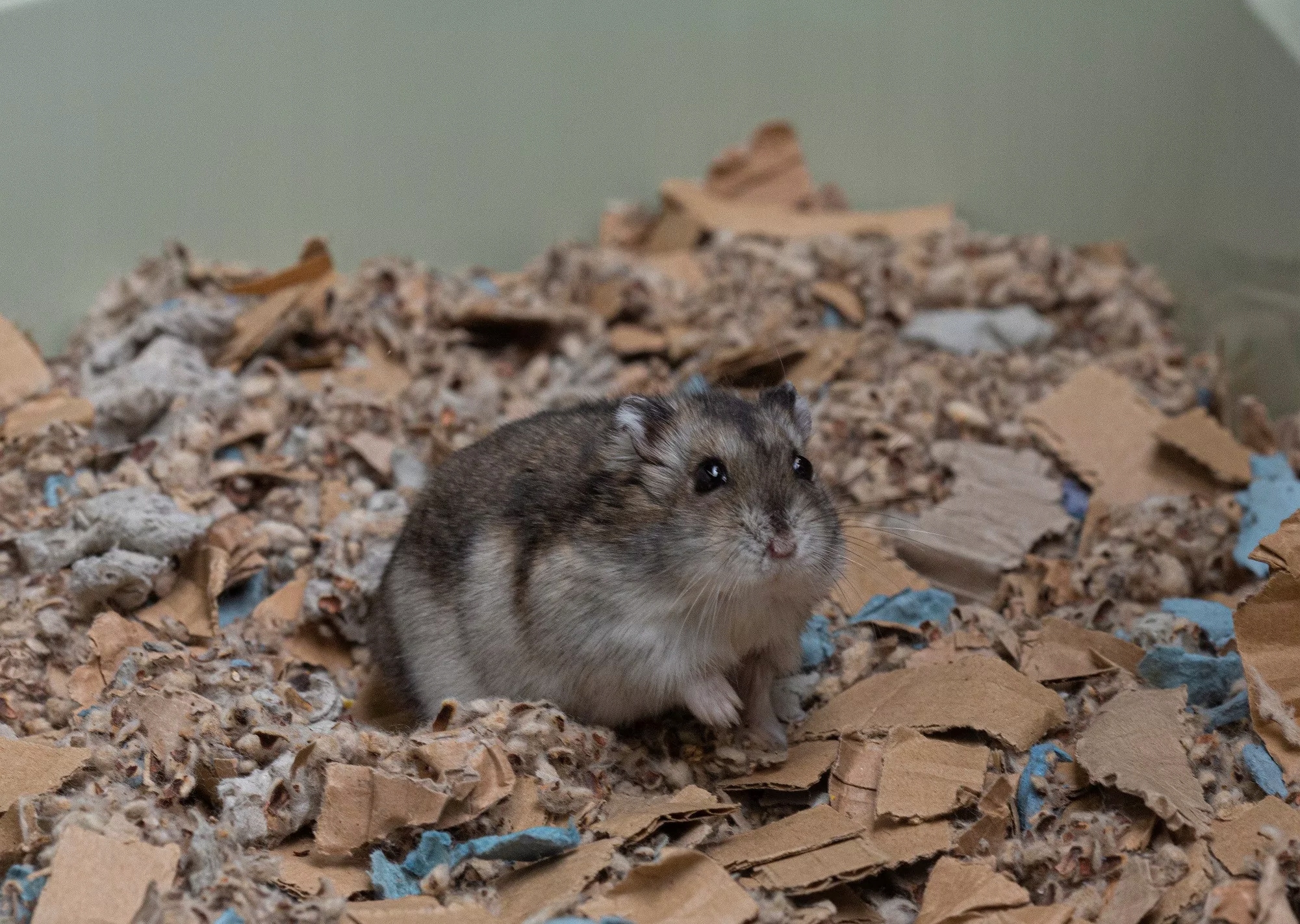Положите в клетку толстый слой подстилки, желательно от 5 до 10 см. Чем толще слой, тем эффективнее.