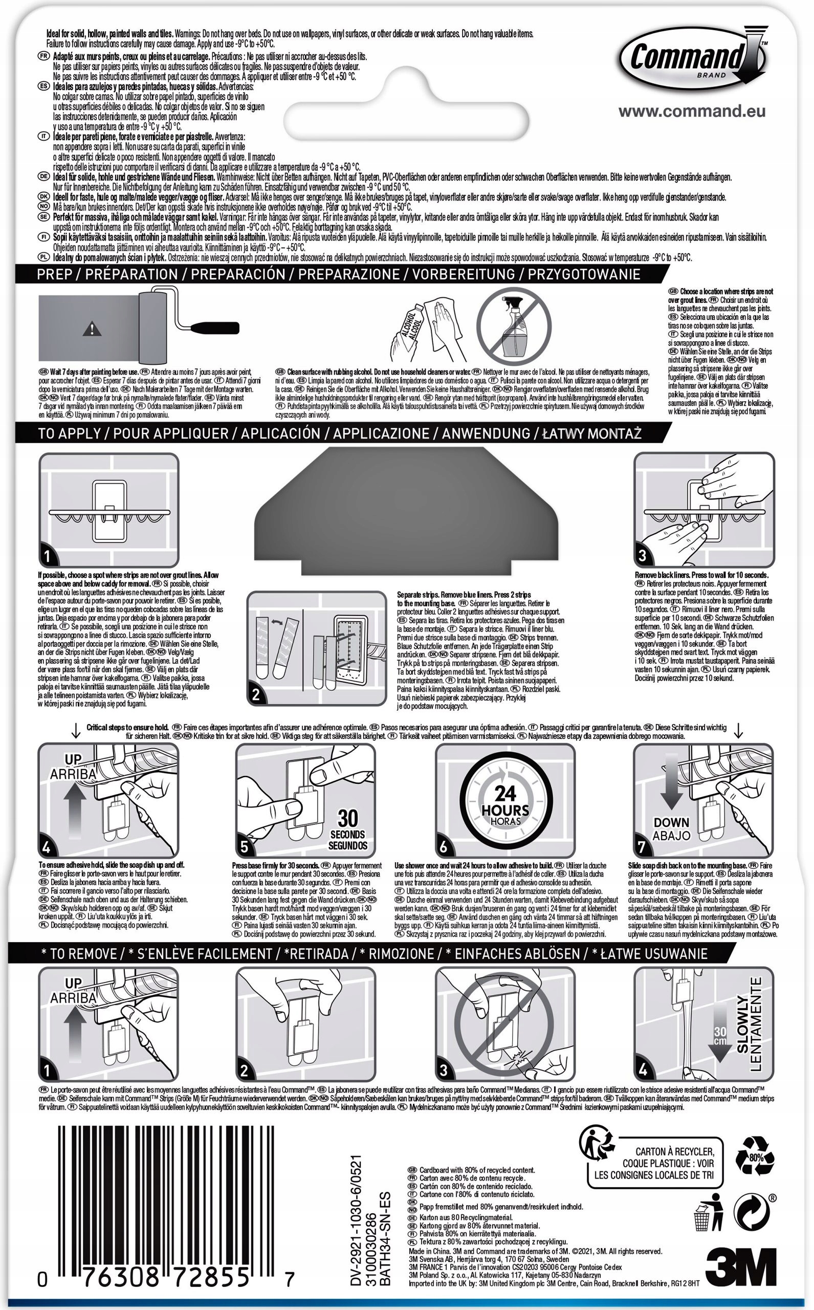 См. инструкцию по применению: после прикрепления к поверхности подождите час, прежде чем класть что-либо на мыльницу. Убедитесь, что поверхность чистая и сухая. Идеально подходит для любой поверхности. Не используйте на обоях, виниле, деликатных или свежеокрашенных поверхностях. Водостойкий, устойчивый к ультрафиолетовому излучению и подходит для влажной среды.