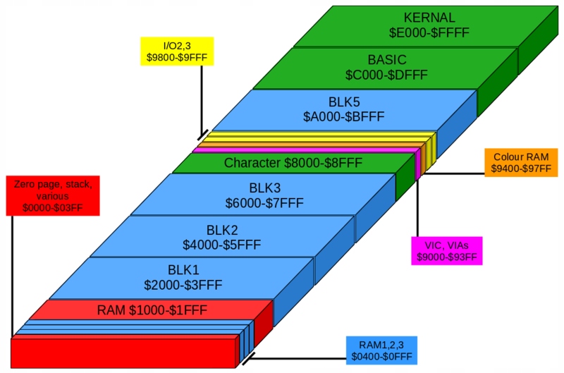 Каждый банк 8 КБ содержит картридж, один образ картриджа VIC20, который отображается в $A000-BFFF (BLK 5)