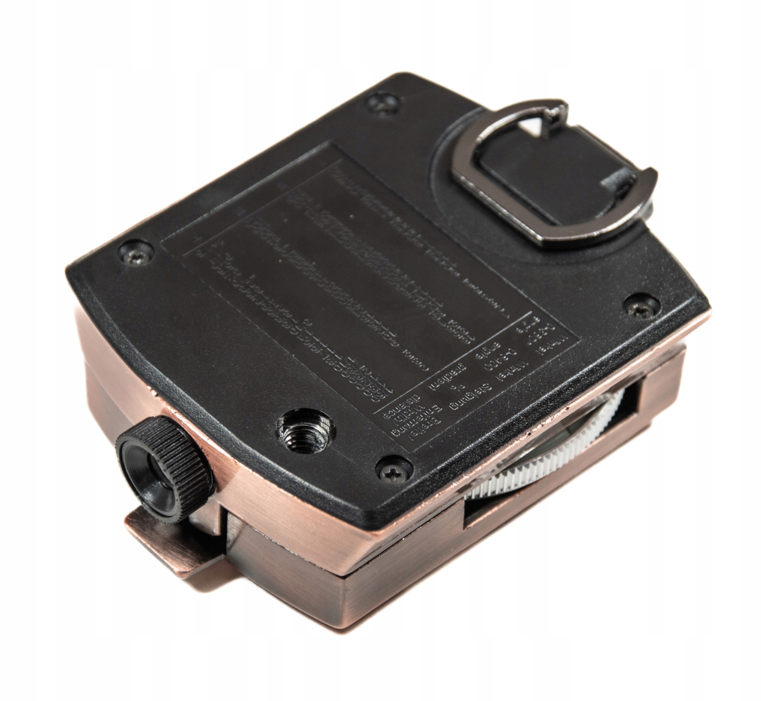 - В нижней части корпуса есть таблица углов и градиентов . включил дело , включающую прикрепление к ремню и ссылку для защиты компаса от потерь.