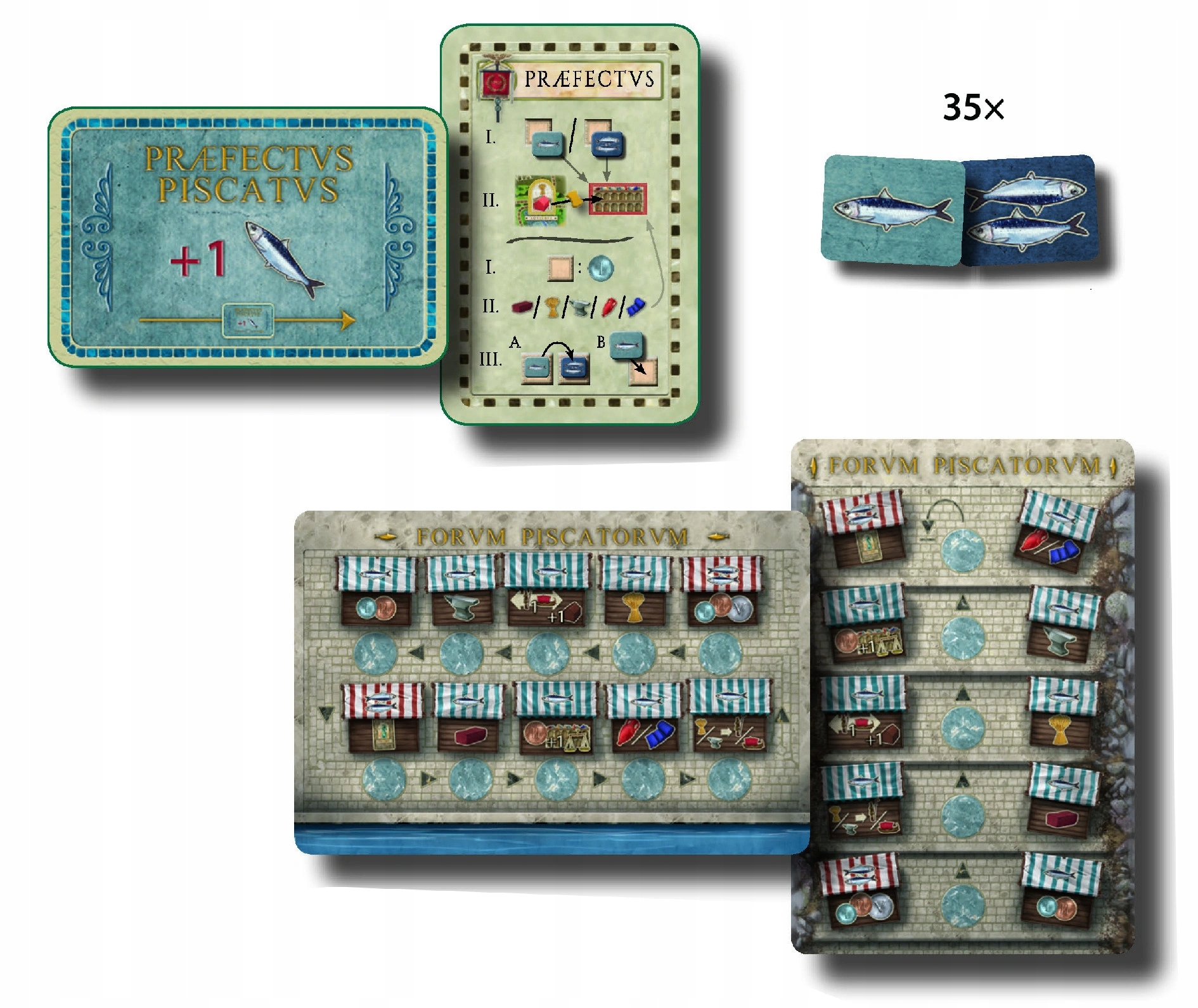 Это модульное расположение Concordia Venus общего плана BALEARICA / ITALIA, который расположен с одной стороны Балеарских островов Ибицы, Майорки и Менорки, а с другой стороны - Сидло. Римская империя, Италия самостоятельная. В расширении вы найдете такой вариант Forum Piscatorum (латинский рыбак), где можно комбинировать с якуколи версии Hry Concordia. Рыбная ловля позволяет получить более сложные стратегии.
