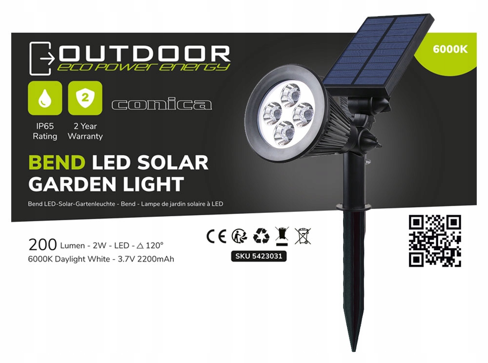 LAMPA SOLARNA WBIJANA CONICA REFLEKTOR LED OGRODOWY SOLAR CZUJNIK ZMIERZCHU
