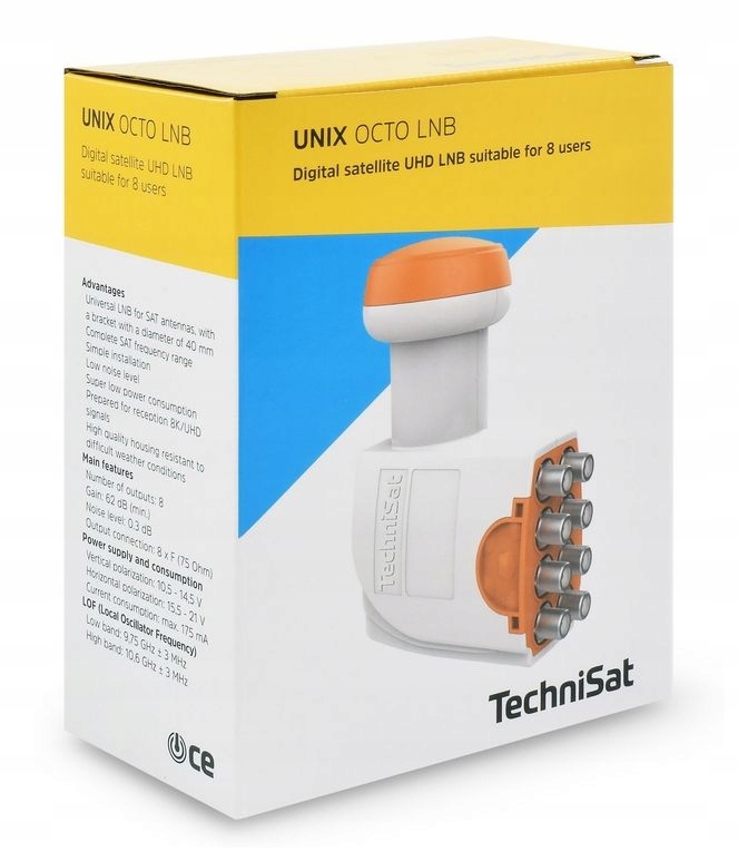 Это высококлассный конвертер из серии Unix известного бренда Technisat. Он характеризуется качеством выше среднего, использованием материалов и компонентов лучшего качества, что повышает его долговечность, жизненную силу и беремую. Конвертер OCTO позволяет вам подключать до восьми независимых спутниковых тюнеров к одному преобразованию или четырем тюнерам с двумя входами (например, с записи). Проще говоря, это 8 независимых отдельных конвертеров в одном корпусе.
