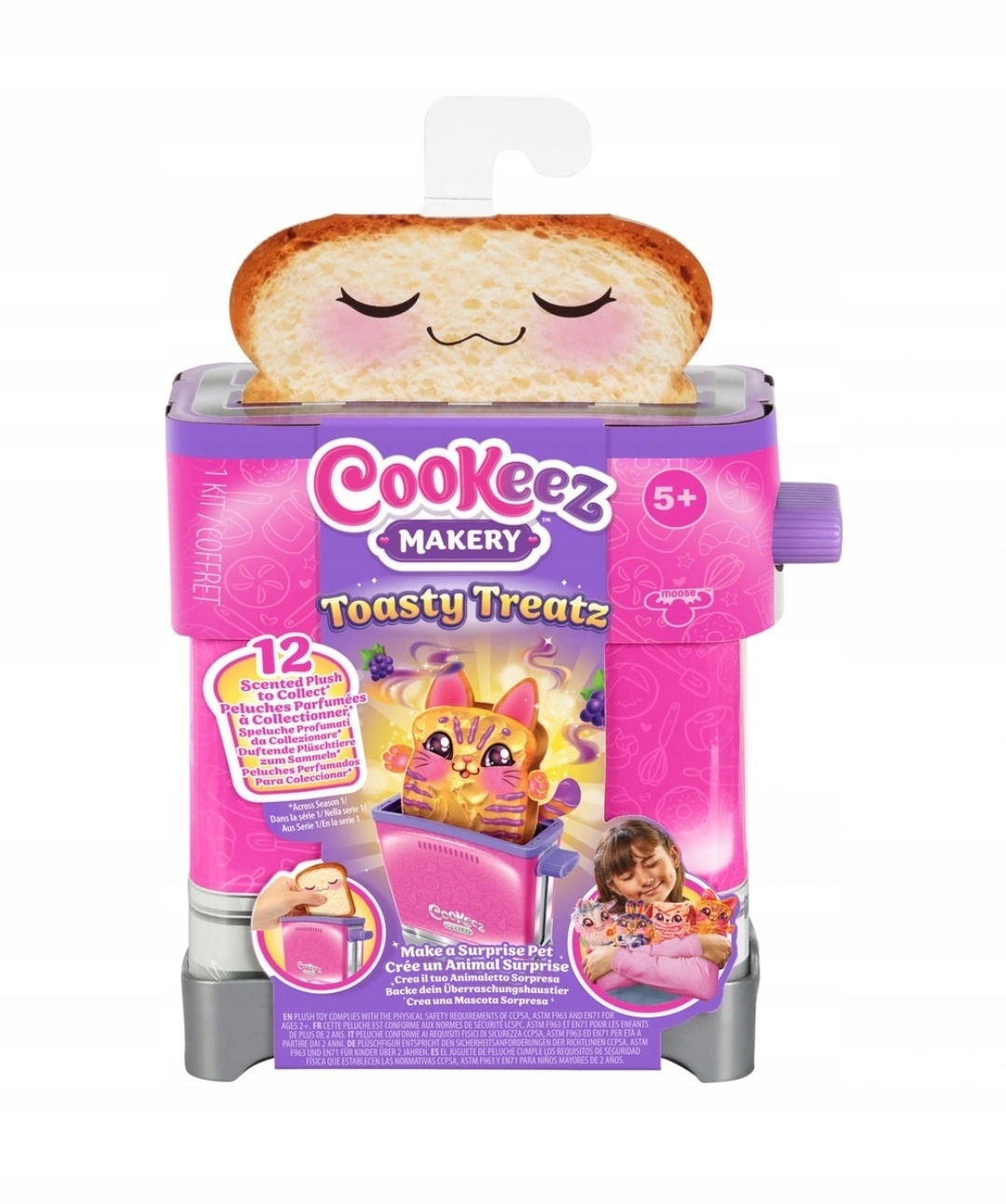 Какая плюшевая игрушка-сюрприз выскочит из тостера Cookeez Makery? Приготовьтесь к сладко пахнущим угощениям, которых вы никогда раньше не видели! Поместите хлеб в прорезь игрушечного тостера и нажмите рычаг вниз. Нажмите рычаг обратно вверх, чтобы открыть невероятно очаровательный плюшевый сюрприз «Тости»!