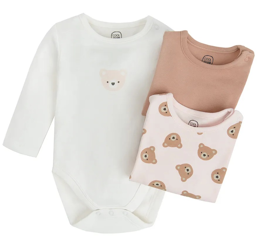 Cool Club Боди с длинными рукавами 3 шт. 24–36 м 2–3 л 98 см Teddy Bear Teddy Bears Розовый 3 упаковки Smyk
