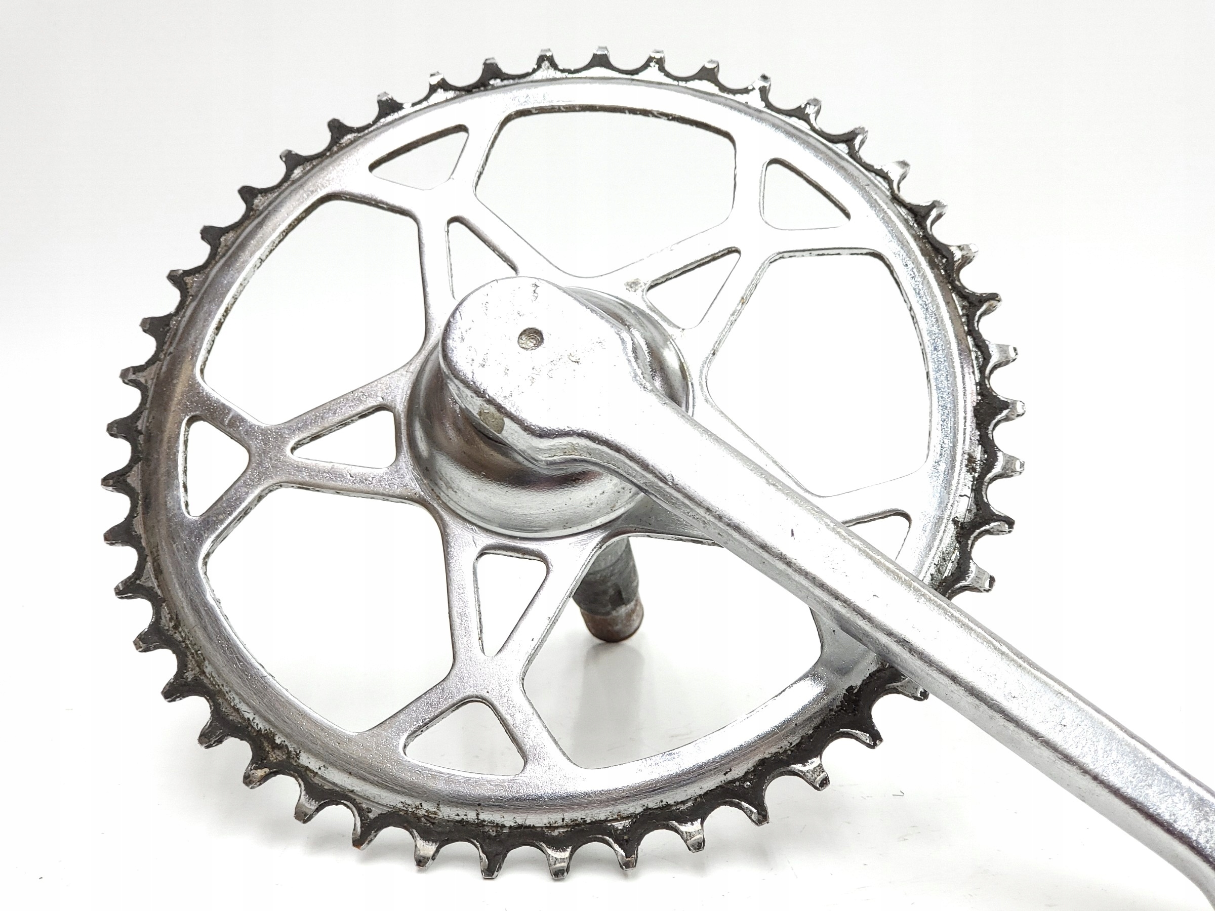 мы предлагаем 46 зубов для велосипедов ZZR Romet Czajka Sokół Wigry Flaming Malwa Narcyz Kalina и аналогичные модели с годов PRL. У рукоятки есть слегка развитое место под клином, с эффективным разрушенным клином хорошо держится.