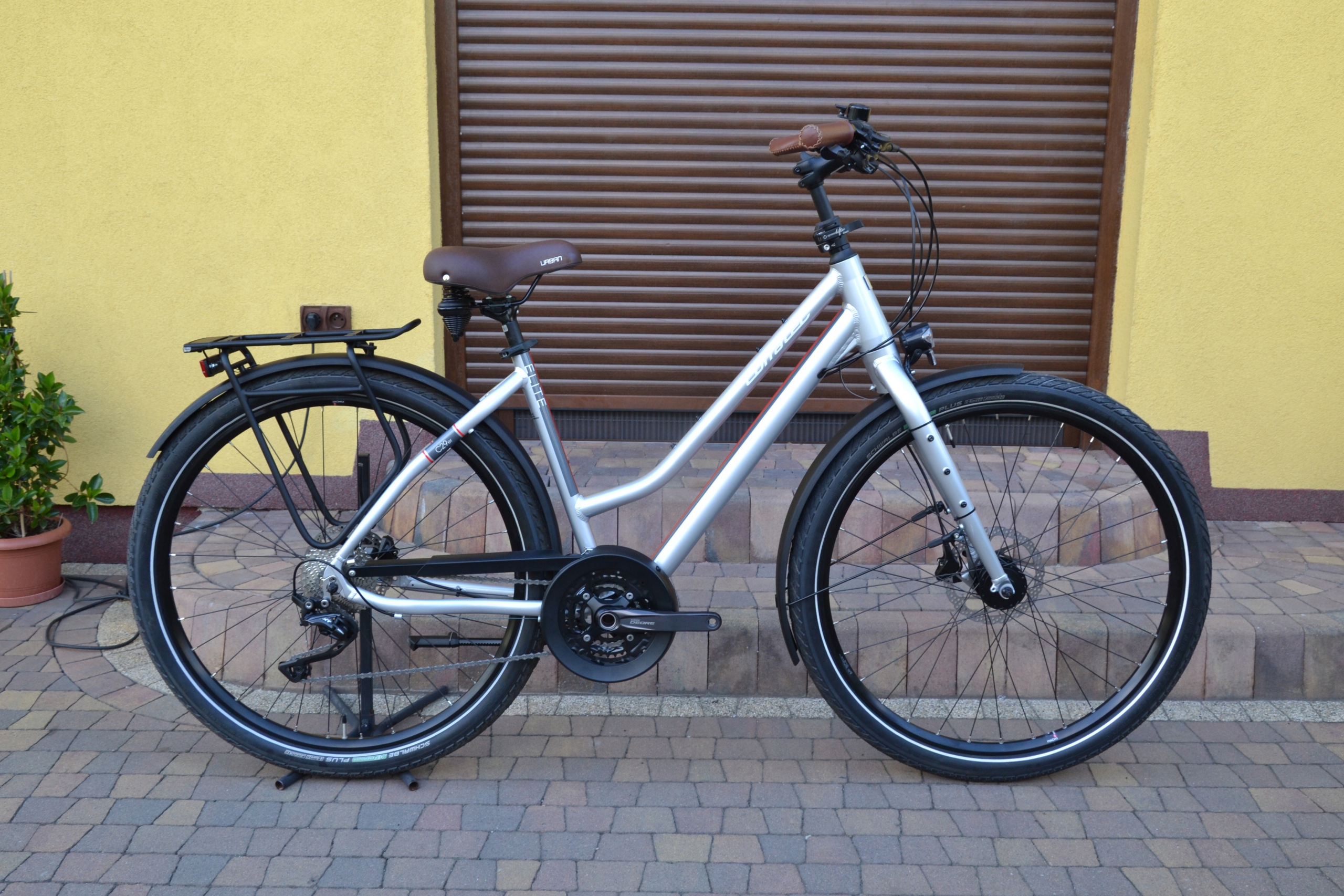 Алюминиевая рама 48 см, колеса 28 дюймов на широких шинах 2,15, гидравлика Clarks, привод Shimano Deore/XT 3x10, регулируемый по высоте вынос руля, светодиодное освещение с питанием от динамо-машины.