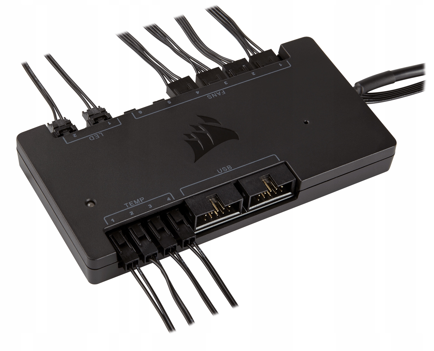 - CORSAIR Commander PRO Позволяет управлять шестью корпусными вентиляторами и двумя каналами освещения RGB, поскольку имеет четыре температуры. датчики (с возможностью перемещения) и два внутренних порта USB 2.0.