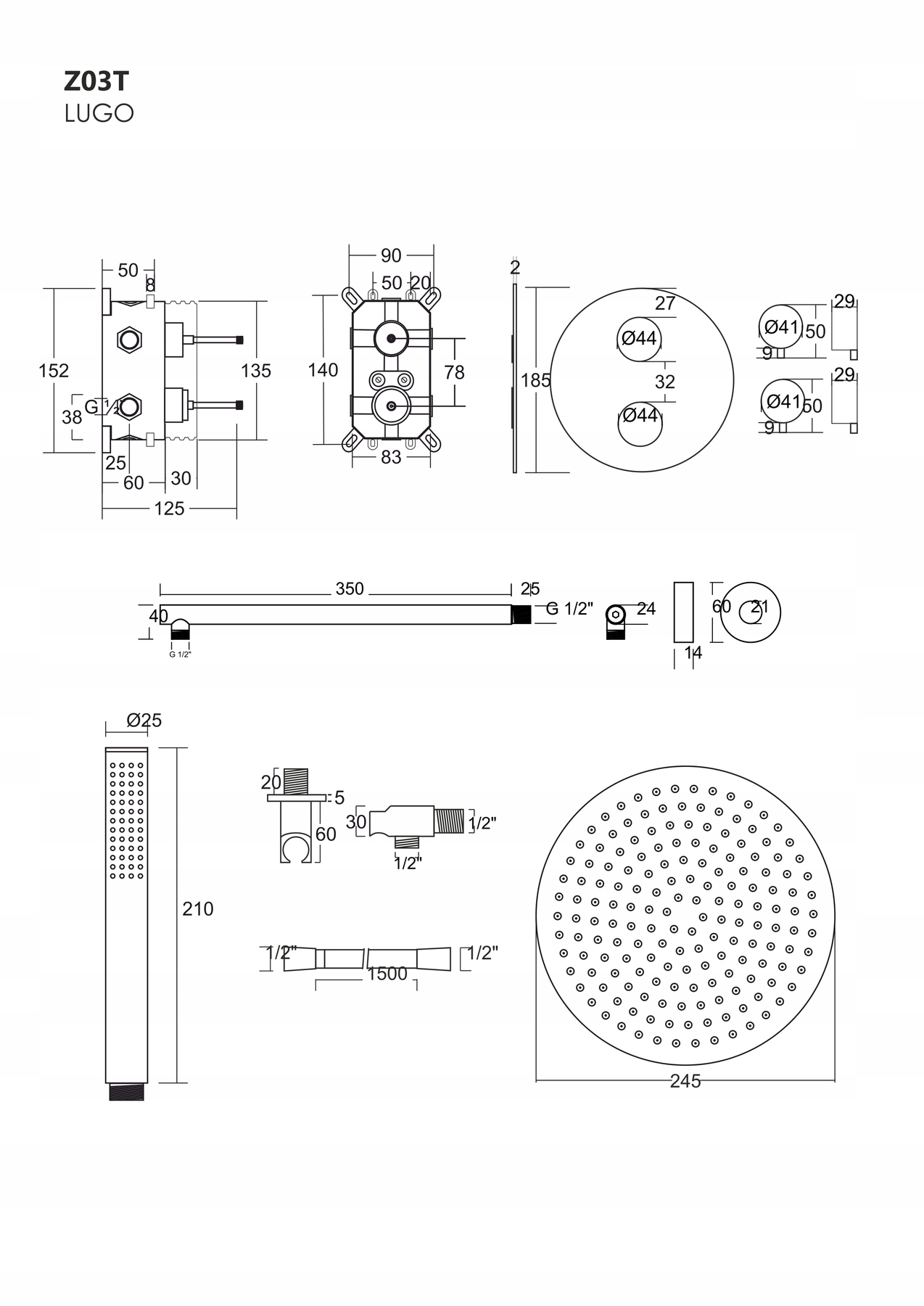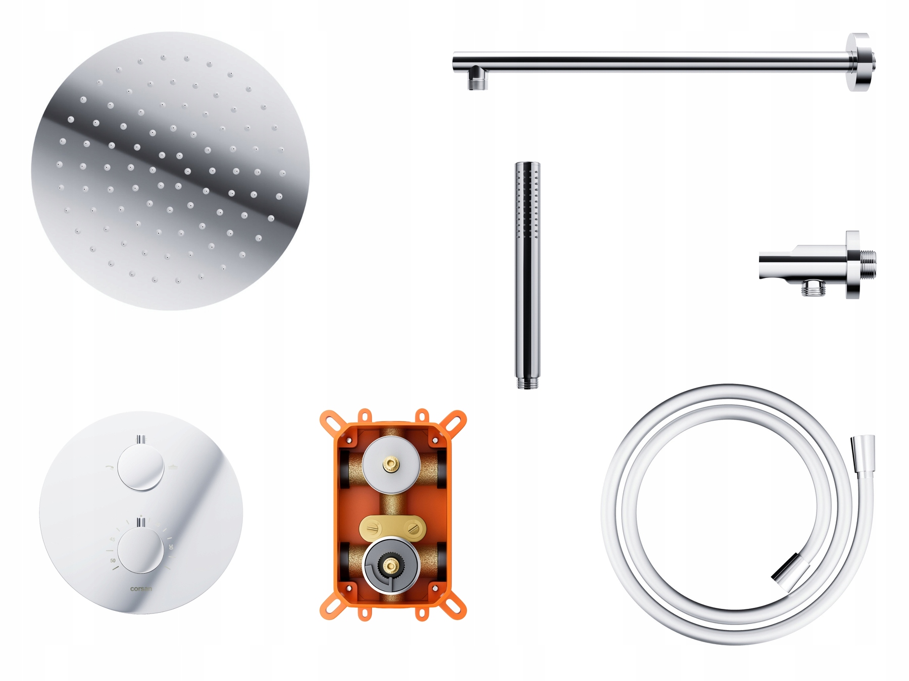 Corsan Lugo Chrome Dempe Kit с дождевым душем, термостатическим аккумулятором и душем