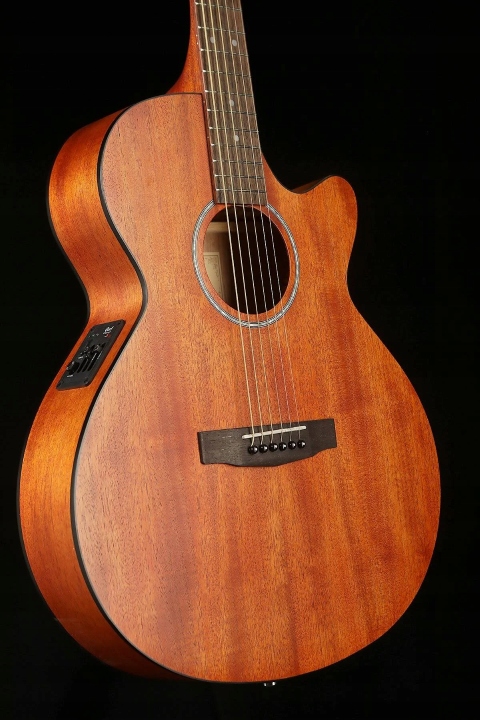 Электроакустическая гитара с тонким корпусом и теплым звуком, идеально подходящая для игры на сцене и дома.