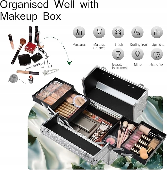 - Косметичка идеальных размеров 32 х 21 х 26 см (Д х Ш х В) — идеальна для путешествий, для профессионального и частного использования. Обеспечивает идеальную организацию вашей косметики, лаков для ногтей, украшений и т. д.