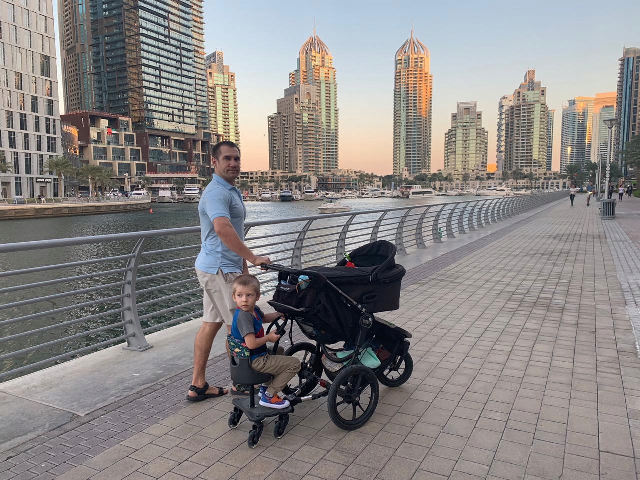 - универсальным телескопическим адаптерам, позволяющим регулировать расстояние дополнительного спального места от коляски