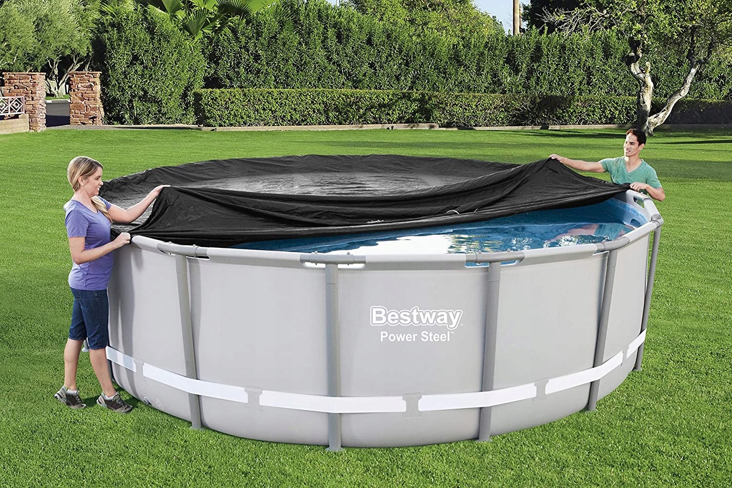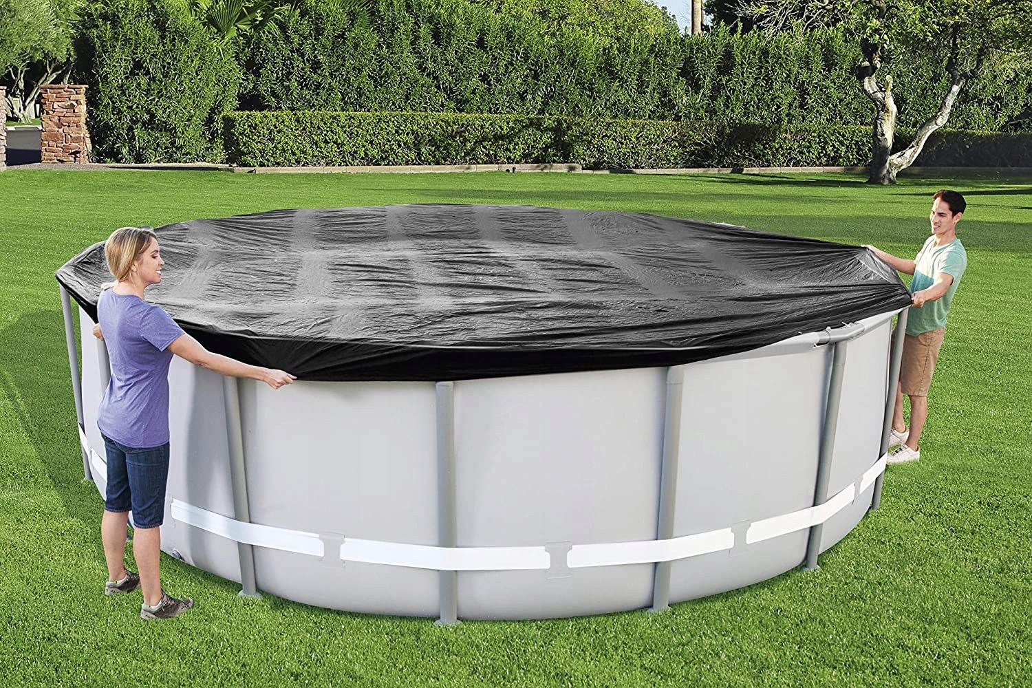 - Покрытие диаметром 493 см идеально защитит ваш бассейн от насекомых, птиц, листьев и дождя. Перед запланированным принятием ванны вам не придется беспокоиться о плавающей грязи. Все, что вам нужно сделать, это надеть чехол на бассейн после его использования.